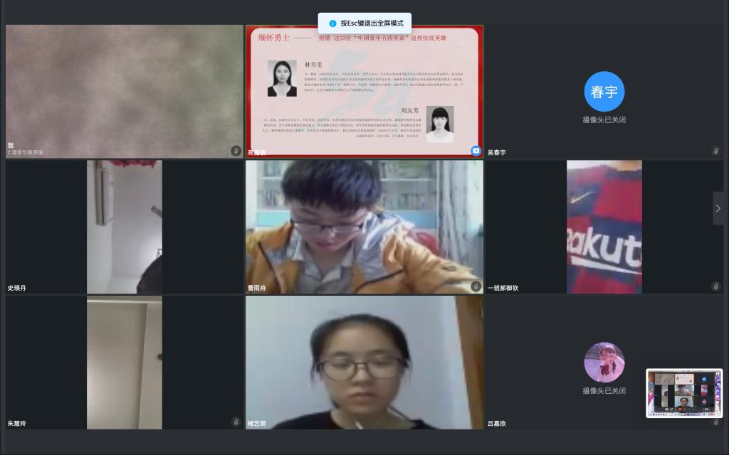 2020年6月10日,2019级1班召开了以“雨涤新夏战疫先,数院齐心御时艰”为主题的线上班会,团支书丛兰苹同学主持了此次班会。