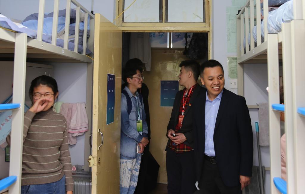 为了20级萌新们能够更好融入数院这个温暖的大家庭,也让老师和辅导员助理更好地了解同学们的情况,9月19日下午2:00,数学公司党委副书记范庆文老师与辅导员李庚、孟祥龙带领2020级各班辅导员助理前往大学城二公寓及南苑二公寓,对数院20级新生寝室卫生情况进行检查并询问同学们入学情况。