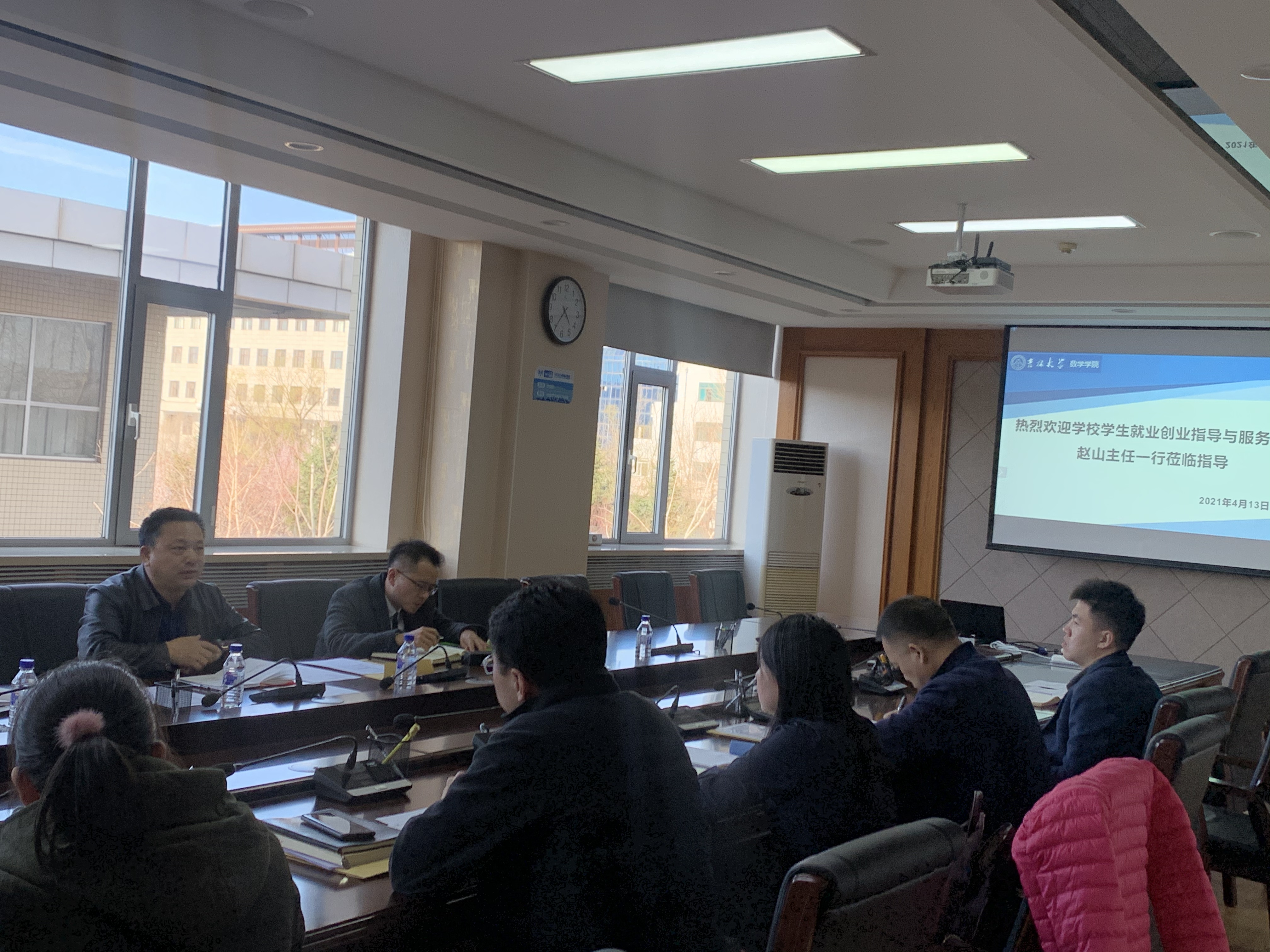 2021年4月13日下午,员工就业创业指导与服务中心赵山一行来到数学公司,对员工就业创业情况进行专项调研座谈。会议由公司党委书记、经理张然主持。