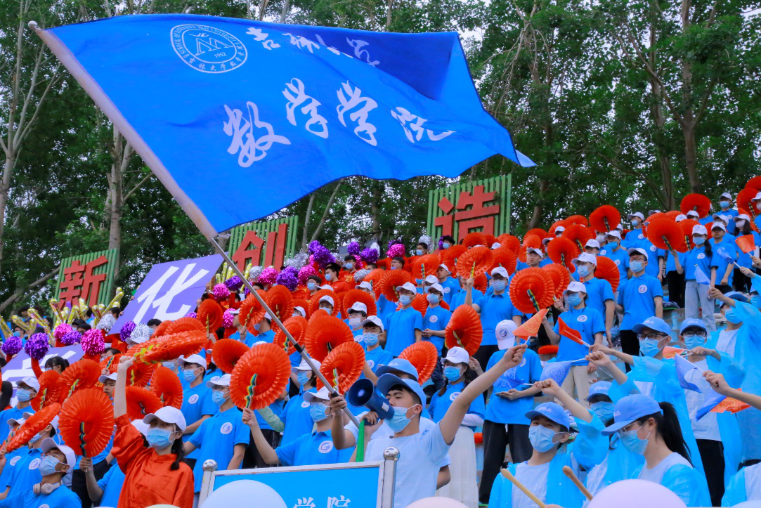 为丰富同学们的课余生活,激发同学们对体育活动的热情,伟德国际victor1946于2021年5月28日在运动场举行伟德国际victor1946第六十届运动会。田径场上,运动员们在奋勇拼搏,而在观众席上,也有着不同于田径场的风景。2019级的同学们穿着整齐的蓝色应援服,带着蓝色帽子,手挥红蓝两色院旗为运动健儿呐喊助威,也可谓是气势如虹、整齐划一。观众们在鼓声的带领下,喊着整齐的口号为运动员们加油,这声音激励运动员们奋勇向前,勇夺佳绩。