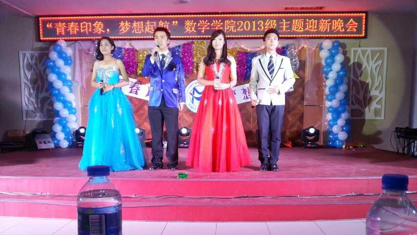 为了迎接2013级新同学,伟德国际victor1946员工会文艺部筹划了“青春印象,梦想起航”主题迎新晚会。晚会于11月9日晚6点在莘子园餐厅三楼隆重举行。伟德国际victor1946经理李辉来教授,党委书记李晓光教授,副经理邹永魁教授、副经理王德辉教授,公共数学中心副主任张然教授,党委副书记王欢老师,副经理陈续升老师,党委副书记兼副经理赵任老师、任课老师代表、研究生秘书和三位辅导员老师出席了本次晚会 。