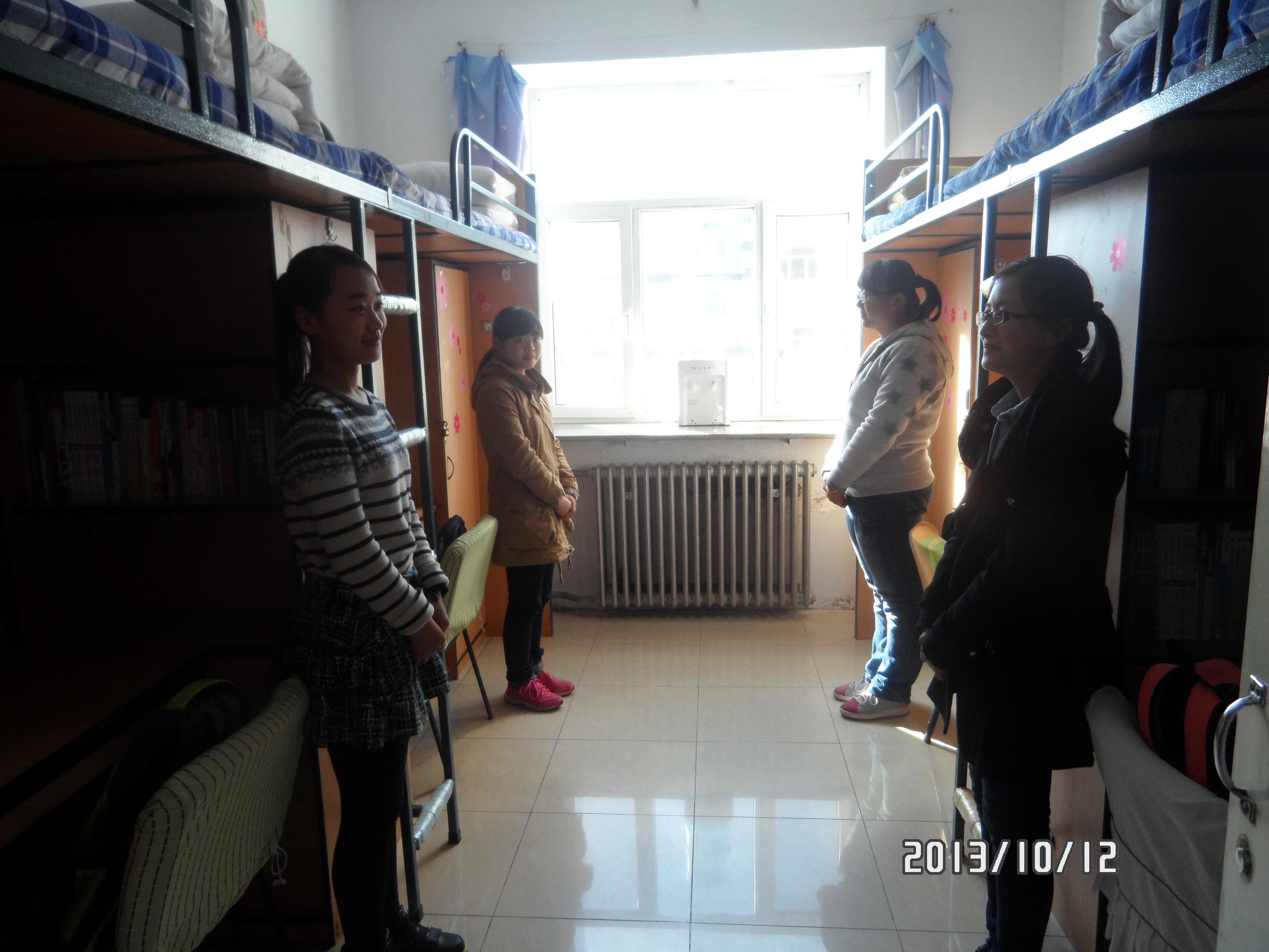10月12日中午12时,由员工会生管会和女综部联合主办的伟德国际victor1946院检活动如期进行。2013级辅导员申川、员工会主席王艺霖以及女综部和生管会的全体成员作为本次院检的评委,共同对2013级同学的寝室进行了全面细致的检查,对各个寝室的卫生进行打分。