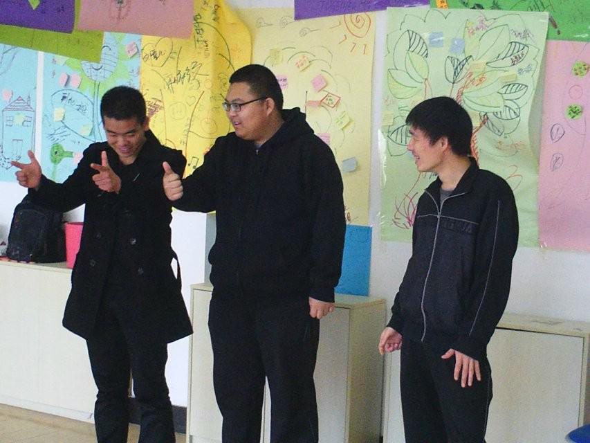 第二部分,配合协作,我们组织了一些娱乐性的游戏,比如李衍初、姜良山同学的生活情景再现;郝永乐同学的肢体笑话;何淑彦等同学你唱我舞表演各类游戏表演笑料百出层出不穷。