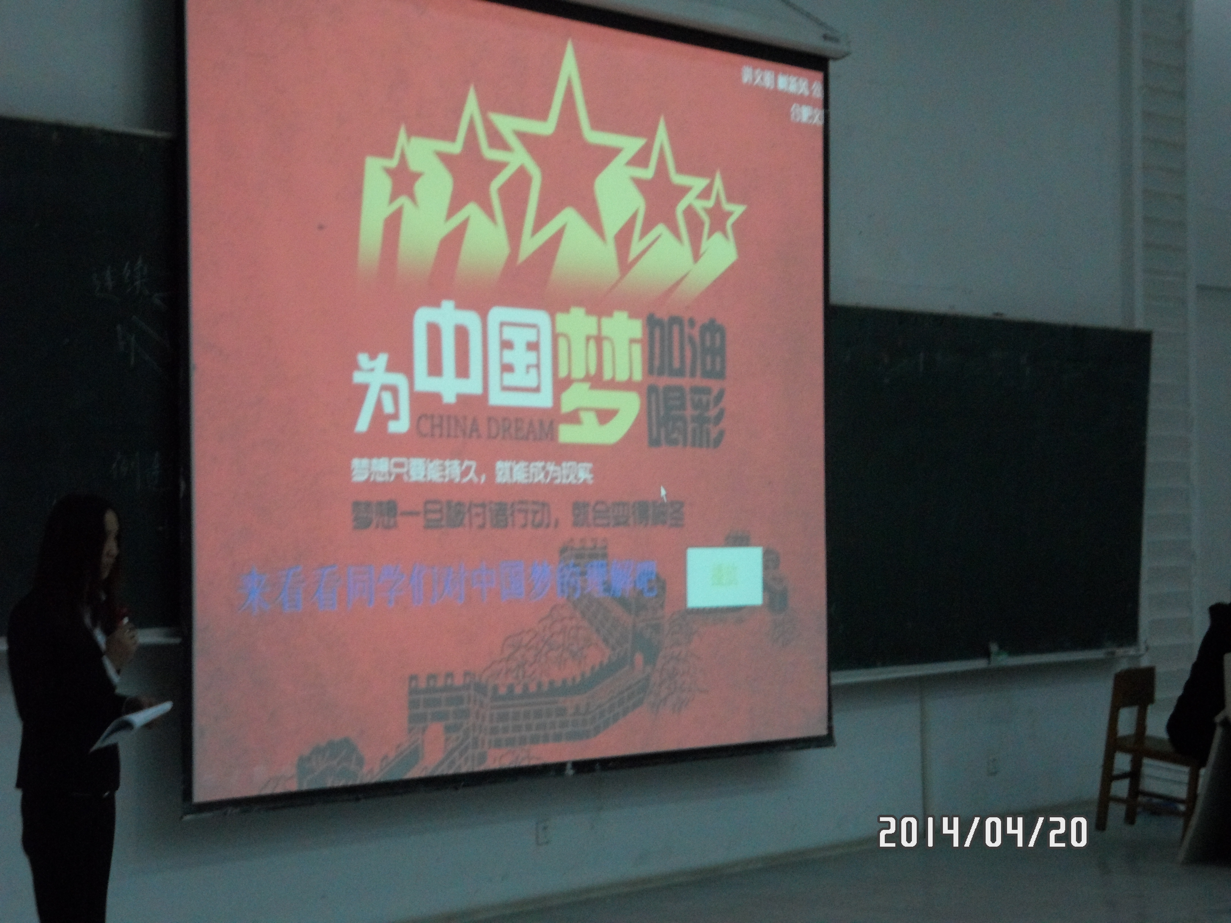 主持人致开幕词后,全体同学开始观看“我的中国梦”微电影大赛的获奖微电影《希望树》,去感受正能量,感受中国梦。紧接着,同学们观看了由部员拍摄的VCR《什么是中国梦》,了解同学们对中国梦的理解。之后各班表演精心准备的节目,来表现自己对于中国梦的理解,在表演节目过程中,主持人穿插介绍了伟德国际victor1946过往举办的与中国梦有关的活动。在各班结束表演后,由到场嘉宾打分评选出一、二、三等奖,并颁发奖状。颁奖结束后,同学们观看了VCR《我们身边的中国梦》。