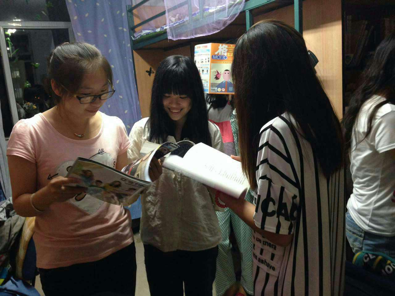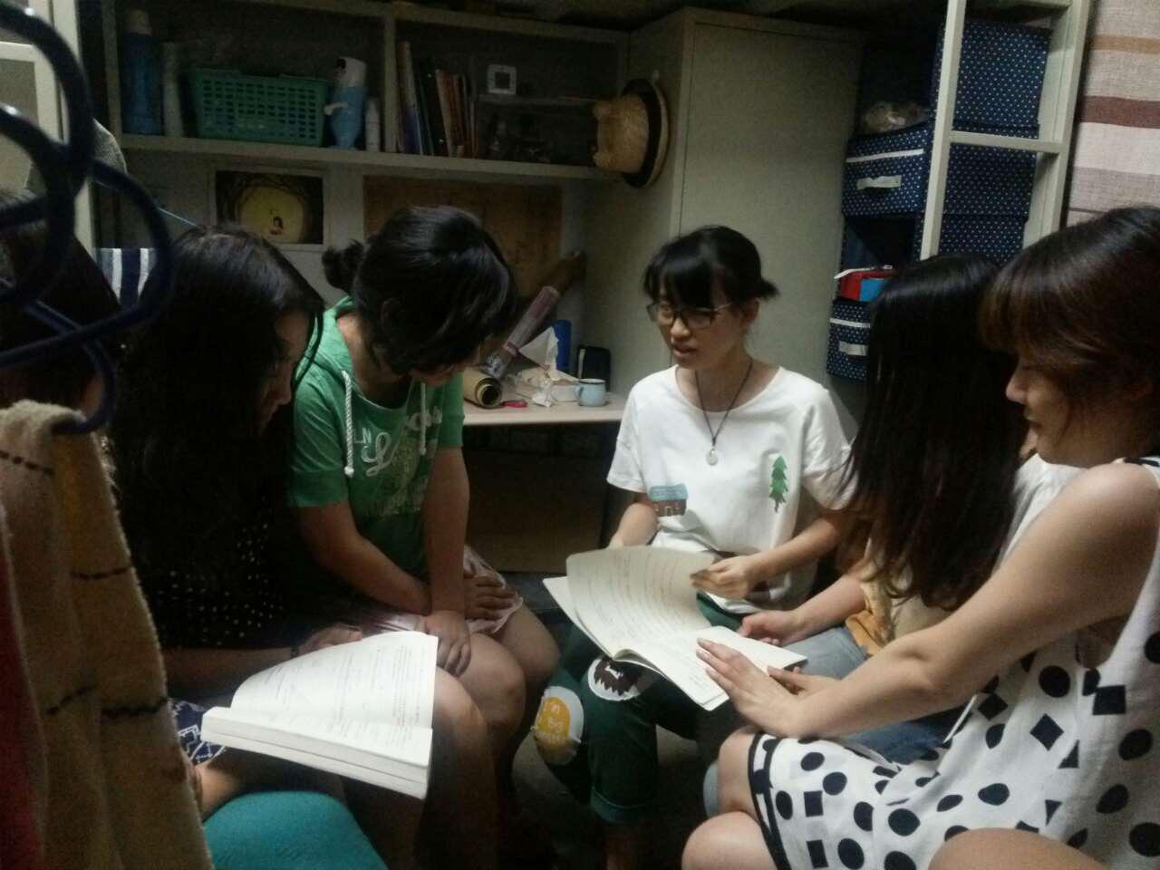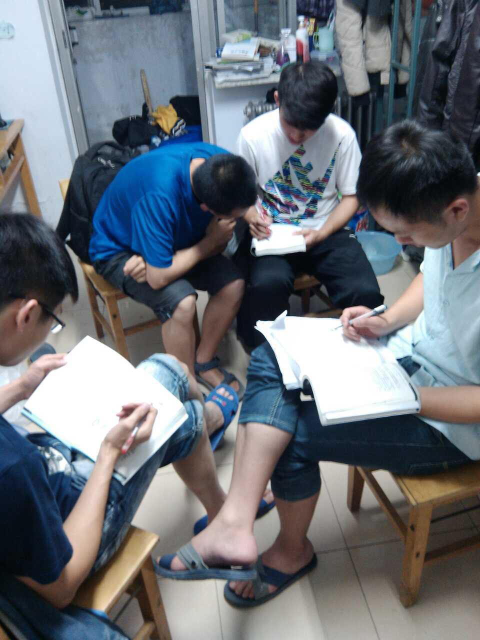 同学们在公寓内对课后的数学问题进行着讨论,气氛热烈。流露出“数学人”的坚韧与勤奋。