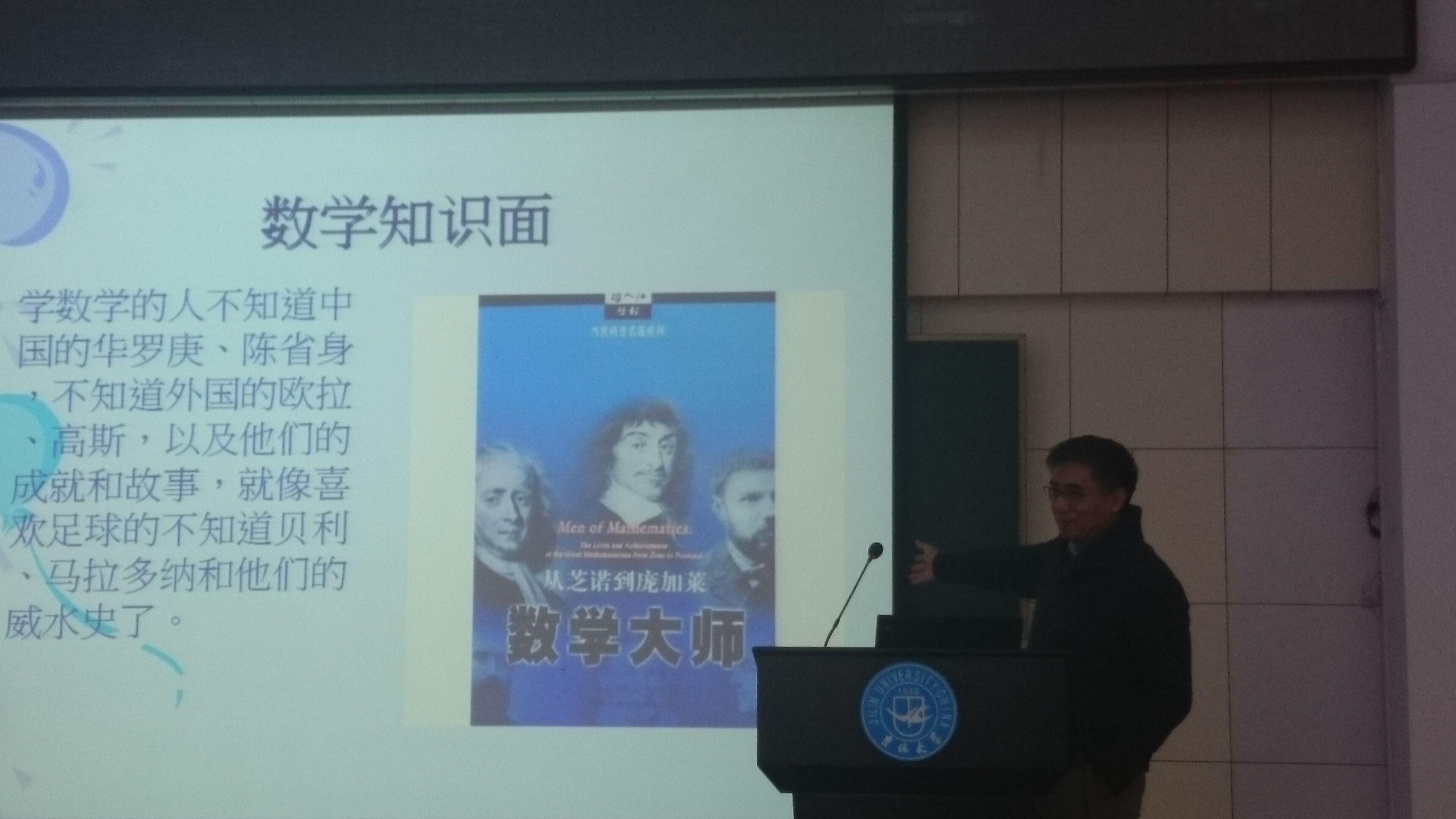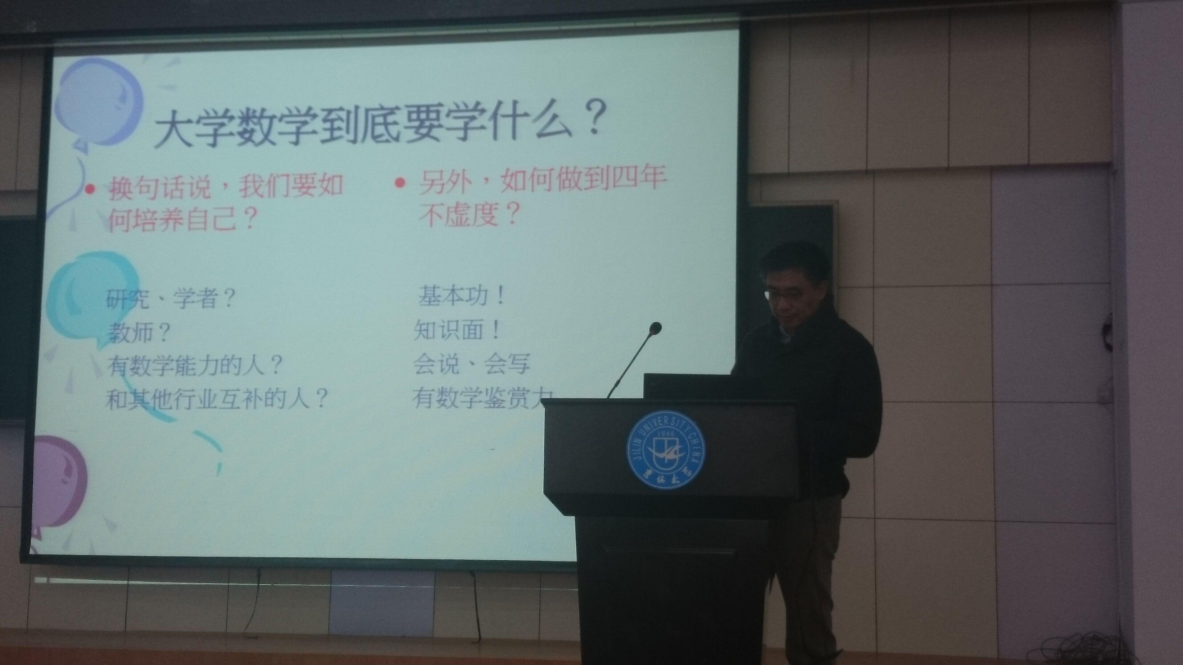 汤老师鼓励同学们在稳扎数学基本功的同时要拓宽数学知识面,多多了解数学文化,了解自己所学专业的发展史,特点。汤教授向同学们推荐了关于了解数学历史,数学人物的故事与成就的书籍,像《我的大脑敞开了》、《库朗:一位数学家的双城记》、《难以企及的人物》等等。文化是一项软实力,其背后隐藏的力量也是巨大的,他希望同学们不要只把数学当成一门手艺,而是要多多关注数学自身的意义,数学的人文力量。