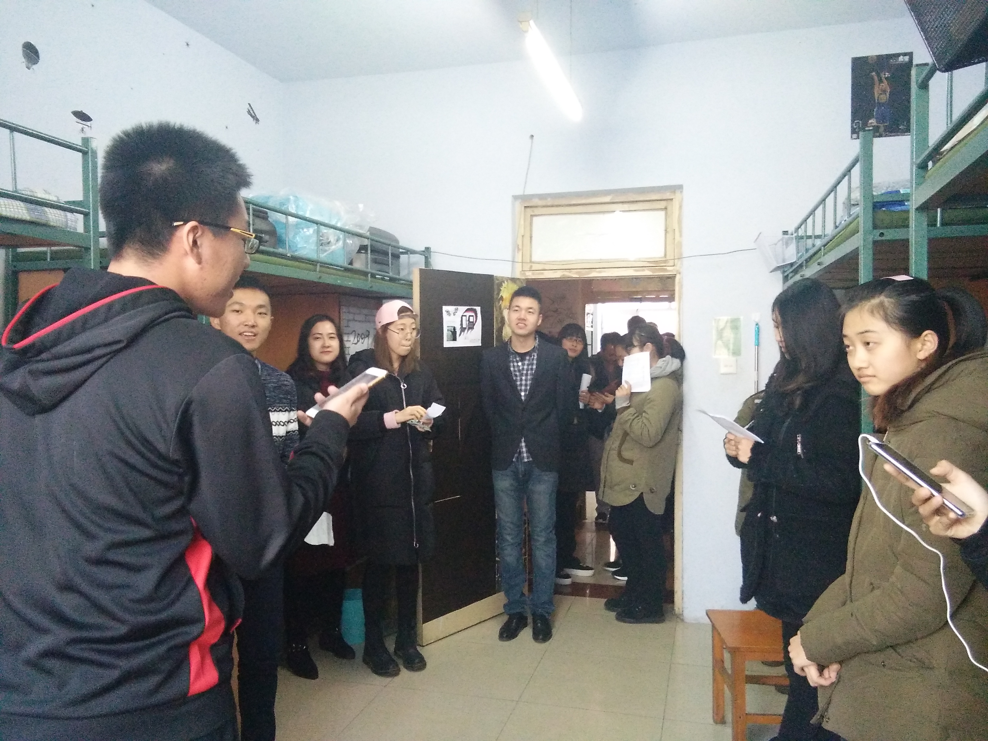 沿着走廊一路前行,两侧是精心画出的壁纸,涵盖了整个吉大的风貌,展现了伟德国际victor1946丰富多彩的文化生活。在经过女综部和生管会部员的介绍以后,评委和老师们开始依次参观各个寝室,大家的寝室都整洁干净,各有特色。同学们分别介绍了他们寝室的名字和寝室logo的设计理念,还简单讲解了一下他们平时的寝室生活以及室友之间的趣事。随后登场的精彩节目吸引了所有评委的眼球,有悦耳动听的歌曲,有热情奔放的舞蹈,还有情节跌宕起伏的话剧。很多寝室还有女生的大力支持和参与。男同学们还贴心地准备了许多女同学爱吃的小零食摆在寝室门口,请大家品尝。最后,寝室文化节就在同学们的欢声笑语中结束了。