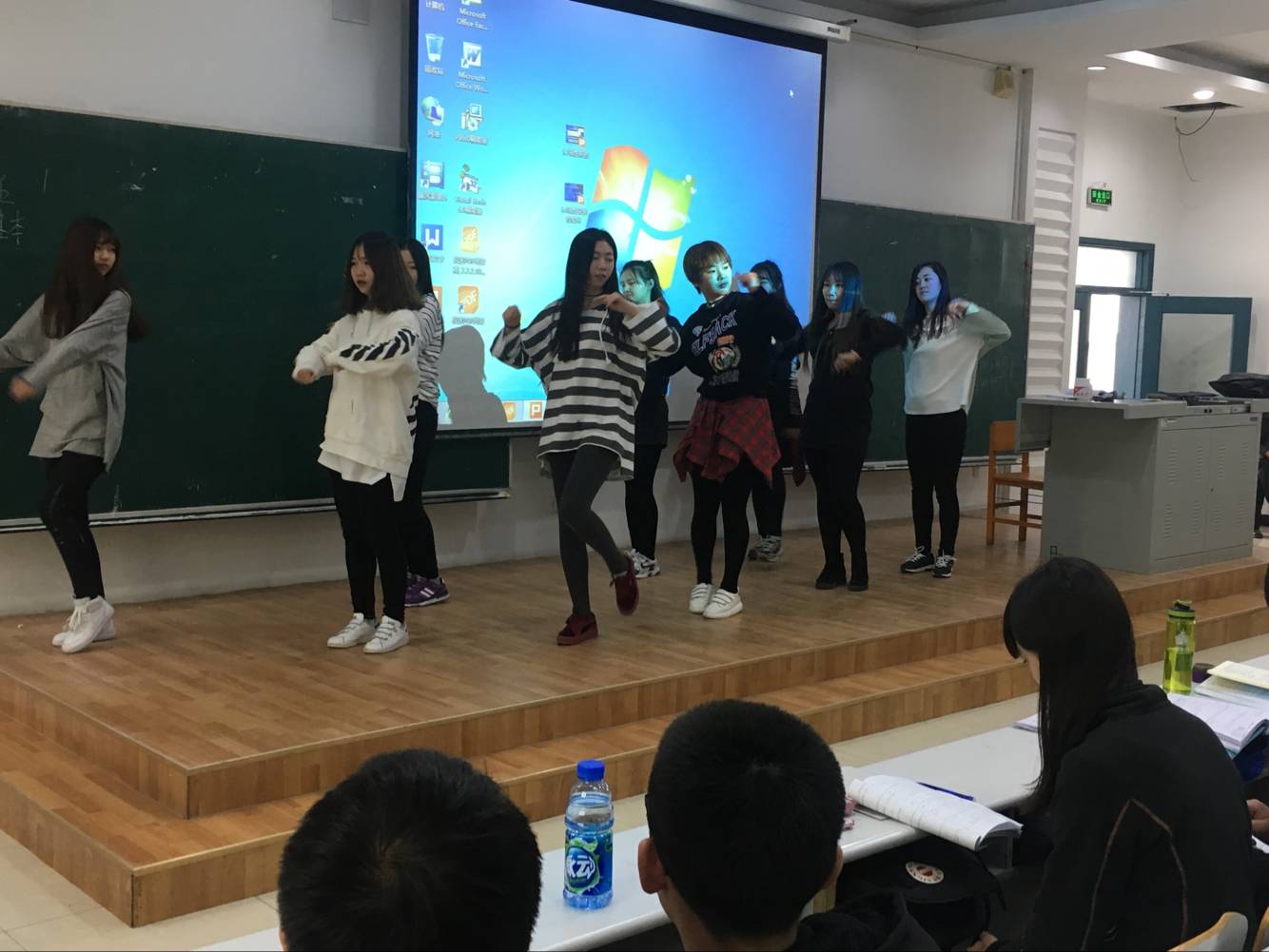 正值课间,音乐突然响起,一群活泼阳光的年轻人吸引了同学的目光,短短几分钟的热舞,带动了整个教室的氛围。在恰当的时候戛然而止,舞者们飞速退场,给同学们留下无限遐想。过了好久,同学们还沉浸在舞蹈中久久不能自拔。