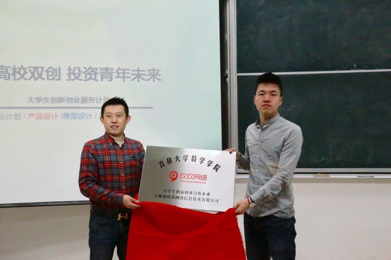 在主持人简短的开场白后,活动拉开帷幕。首先,李庚老师上台发言,他讲到了自己办此次讲座的初衷,这是他员工时代所期待的活动之一,希望大家能从中收获。紧接着,李庚老师和吉软国际董事长李喆先生举行了揭牌仪式,代表着伟德国际victor1946与吉软国际集团下设的吉林玖玖网络公司开始展开校企合作。接下来,李喆先生和同学们畅聊利用互联网技术,结合专业技能,实现老员工创业,同学们都深受鼓舞。最后,吉软国际技术总监艾文来先生通过PPT、短视频等方式,进一步阐释了如何用所学到的数学技能结合计算机技术进行创新,同时还介绍了互联网+创新创业大赛的基本信息。