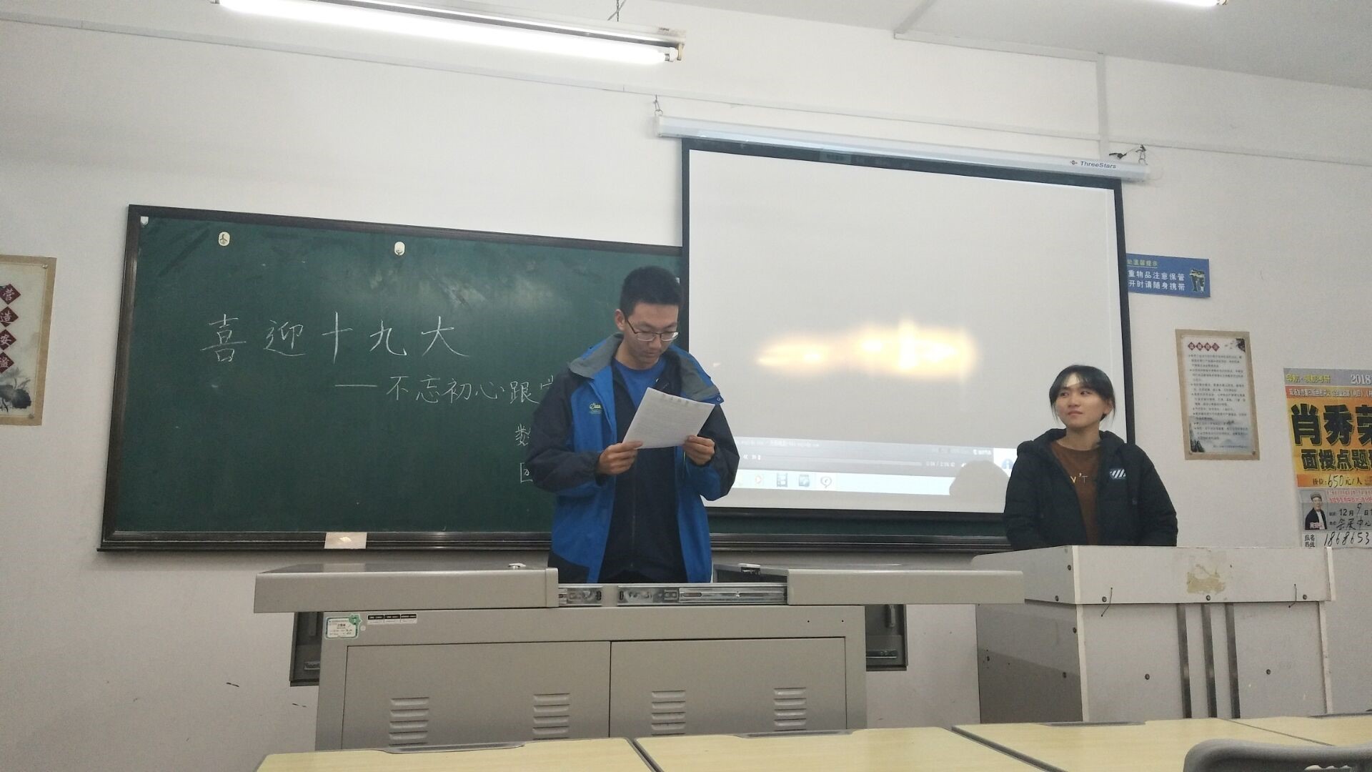 在团支书于甜甜的号召下,同学们各抒己见,用激情澎湃的演讲表达自己对十九大的看法及对国家发展的美好期待。随后,团支书组织同学们展开讨论,以“个人幸福与国家梦想哪一个更重要”为题展开激烈的辩论。同学们各个积极踊跃,才思敏捷,并纷纷表示自己将努力学习,为实现中华民族伟大复兴的中国梦贡献自己的力量。活动的最后,全班同学共同收看了电影《建党伟业》。伴随着演员的喜怒哀乐与情节的跌宕起伏,同学们对中国共产党又有了更深层次的认识。