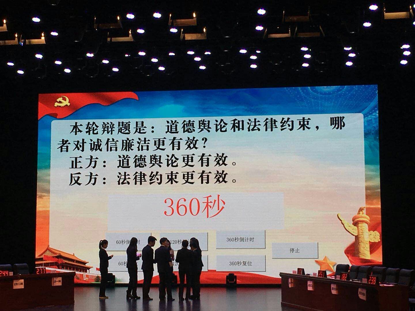 主持人阐述此次活动目的和意义后,比赛正式开始。第一轮为知识抢答环节,由30道选择题与20道判断题组成,题目以廉洁为主题、涉及中共现行廉政政策、国内外各项廉政法律条文等。比赛战况激烈,各支队伍抢答积极、表现活跃,比分交替增长。第二轮为即兴问答环节李玉涵就“作为一名员工党员,如何提高党性修养,加强学习型、服务型、创新型支部建设”进行了180秒的即兴回答,第三轮为主题辩论环节,题目为“道德舆论和法律约束,哪者对诚信廉洁更有效”。苗凯伦同学抽取反方一辩,陈述了在当前社会环境下法律约束要比道德舆论更具有时效性,更加的简洁高效。第四环节为主题猜词。40秒答题时间内,系统随机给出与廉政有关的成语、机构、罪名、影视作品,李玉涵同学描述,刘月同学猜词,两人配合默契,接连答对3题。第四轮为主题附加展示环节。秦雨萱、宋佳宁、李泉瀚同学进行了软笔书法及诗朗诵表演。五轮比赛结束后,伟德国际victor1946获得第五届老员工廉洁文化知识竞赛三等奖、“优秀组织单位”奖。