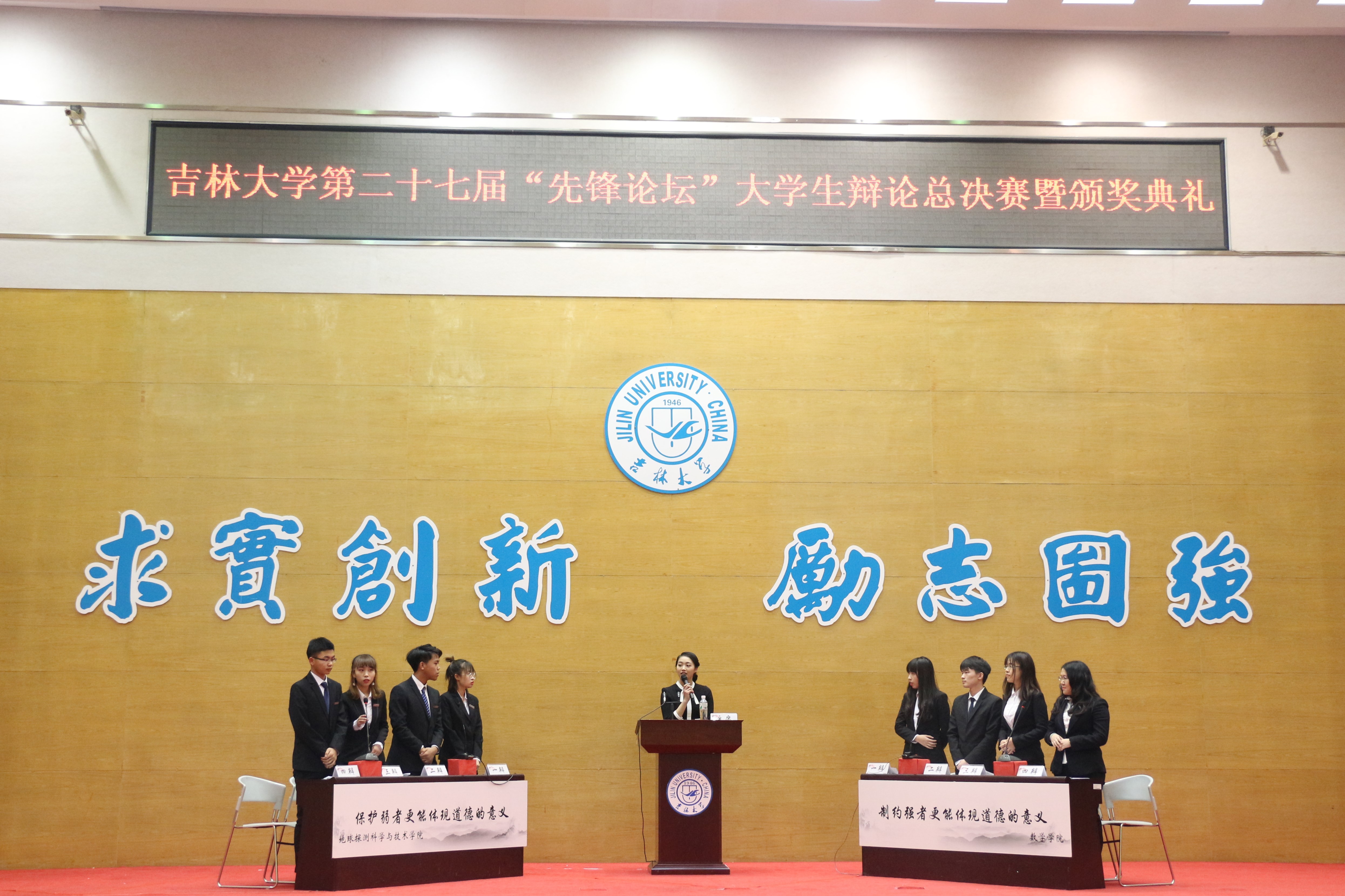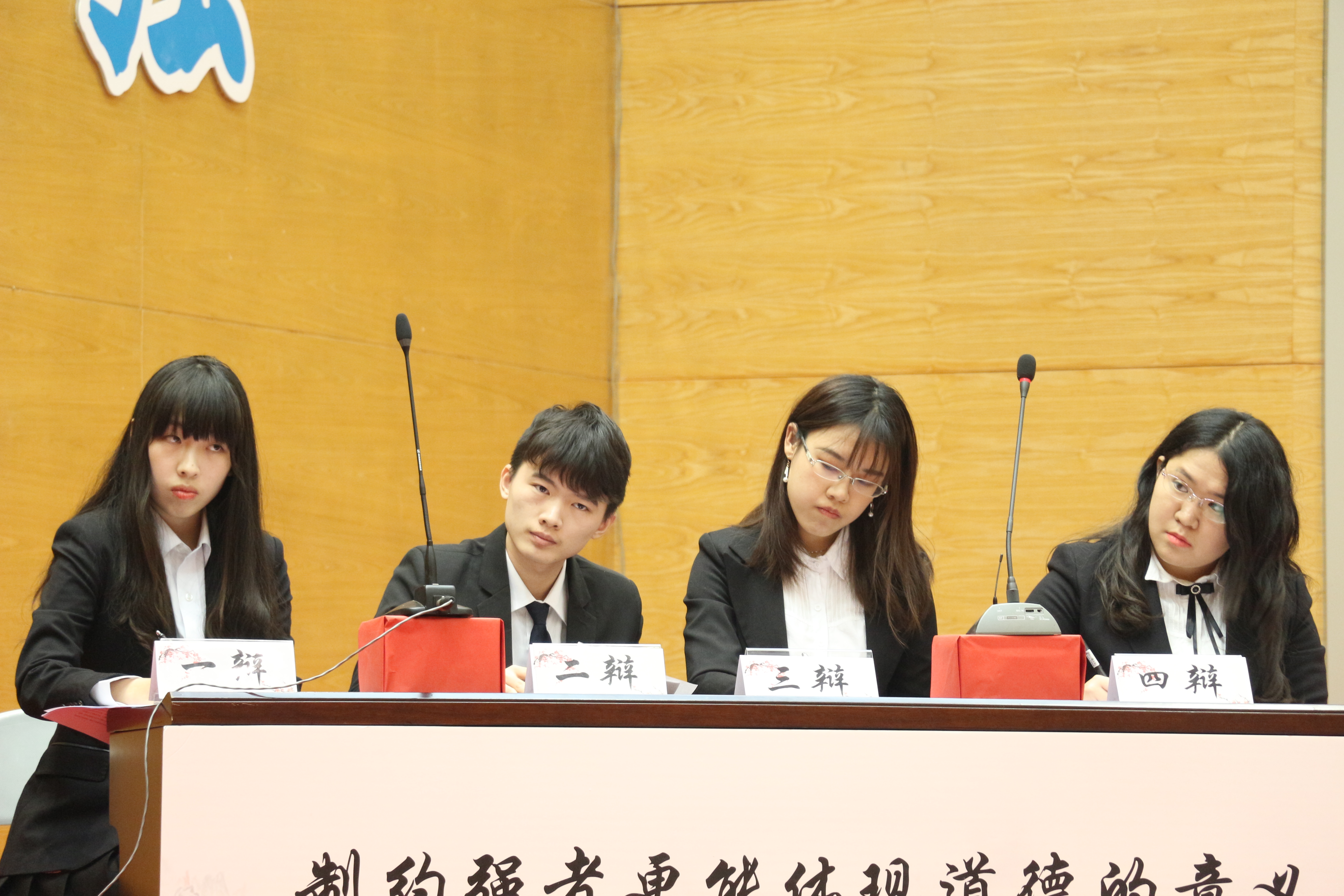 是谁,舌灿莲花,堪使丝竹失色;是谁,唇如利剑,可令管弦无声。在欢呼和呐喊声中决赛拉开序幕,决赛辩题为帮助弱者与制约强者哪一个更能体现道德的意义,伟德国际victor1946为反方制约强者更能体现道德的意义。我方一辩辛悦开篇立论提出道德的意义在于促进社会和谐发展,并从维护社会秩序,解决社会矛盾,引导正向价值三个方面掷地有声地陈述。我方二辩俞宁宁紧随其后,幽默生动地重申保护和制约的概念,拆解对方观点。应对质询,从容不迫,灵活地化解了对方的进攻。我方三辩程蕾巧妙发问,从动机过程结果三个角度准确地论述了制约强者所能体现出的道德意义。我方四辩刚铭君字字珠玑,鞭辟入里,动之以理晓之以情,一句“不要人夸颜色好,只留清气满乾坤”声震全场,引得掌声雷动。评委老师从学理的角度阐释了对辩题的理解并对场上辩手提出了表扬。在万众期待中,主席宣布结果,伟德国际victor1946荣获冠军!共青团吉林省副书记牟大鹏为伟德国际victor1946颁发了奖状以及奖杯。