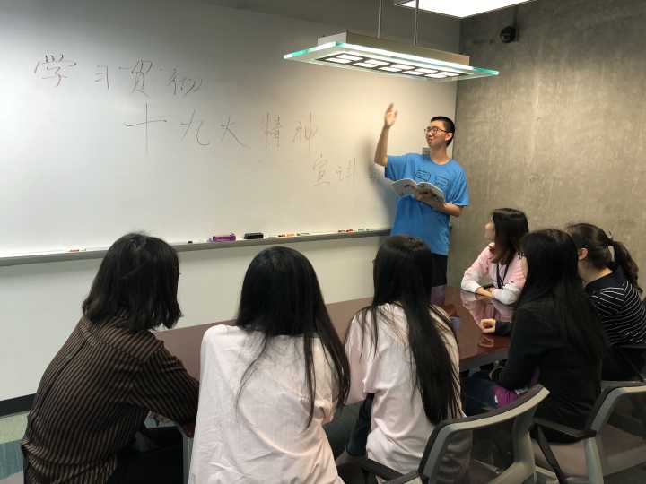 伟德国际victor194615级唐敖庆班为宣传我党最新精神,学习十九大内涵,于出国交流学习期间在佐治亚理工公司开展“青春心向党,莘莘学子情”系列宣讲活动,为广大外国师生带去十九大最新解读,并共同学习十九大精神,研读十九大报告。