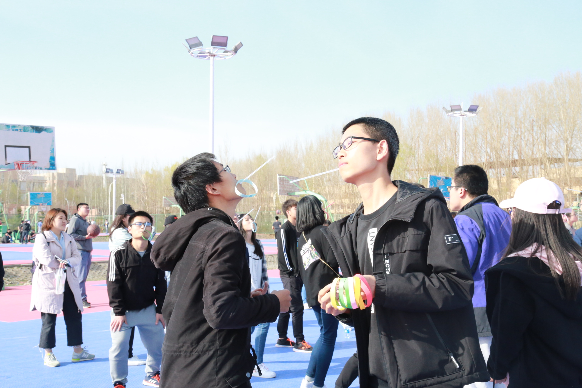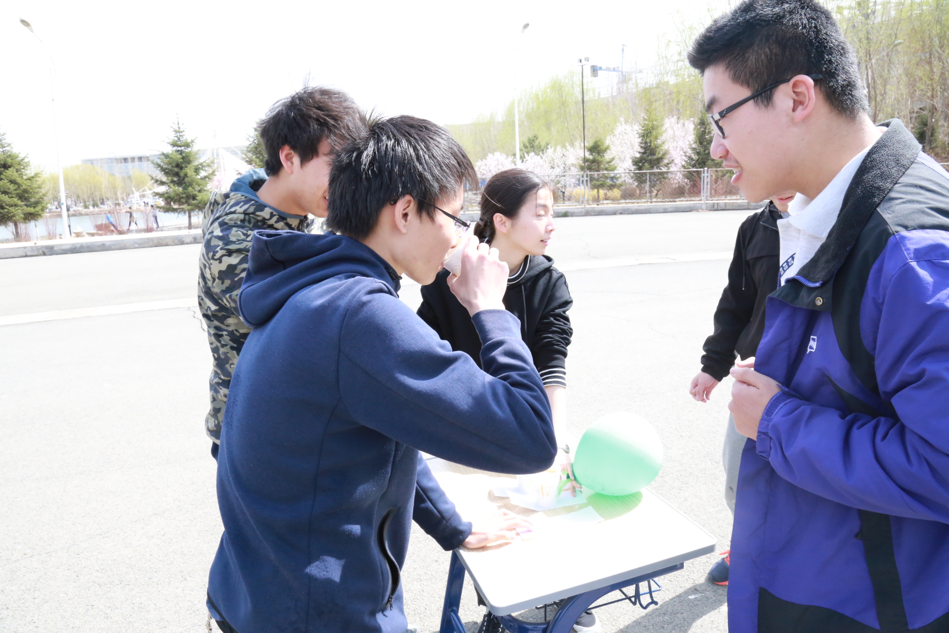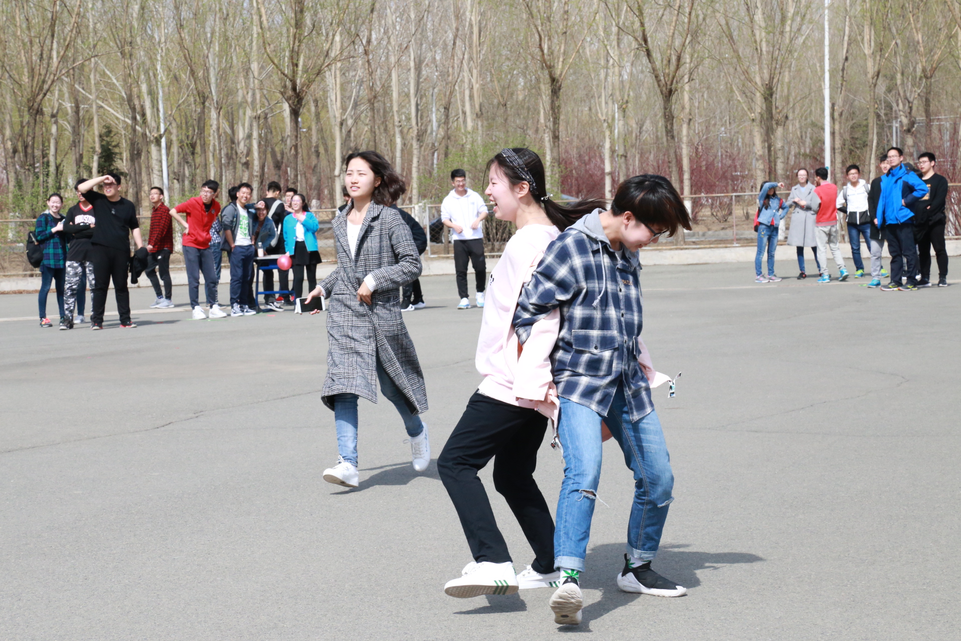 下午一点整,活动正式开始。此次活动以人工智能统治世界为背景,要求参赛队员们逃出被人工智能掌控的“虚拟世界”,掌握算法,拯救人类。经过前期精巧的设计,主办方以生动的故事为主线,分别在清湖、轮滑场、日新楼、体育场、篮球场安排了兼具趣味性与挑战性的任务。在清湖,参赛人员集合,由主持人说明游戏背景,大家开始了极限挑战之旅;在轮滑场,参赛队员们开始“热身阶段”,进行“背对背拥抱”,“8字跳跳跳”,“盲人摸象”游戏,完成了对彼此间默契程度的挑战;在日新楼,同学们进行了“恐怖黑箱”、“旋风摄影师”、“数字捕手”游戏,通过将手伸入黑箱猜测箱内物体,根据下发的图片信息找到拍摄地点,找到菜单上菜品价格来获得游戏线索;在体育场,大家默契配合,一同完成了吸管传纸环的比拼,绑腿走路进行擂台大拍照,一人背一人做气球杀手;在篮球场,参赛成员先折返跑并模仿动作,后在指压板上完成指定任务,最终的撕名牌活动使游戏进入高潮,大家全身心投入,为此次活动画上了圆满的句号。最后“平民窟女团”、“ 小猪佩琪说的队 。