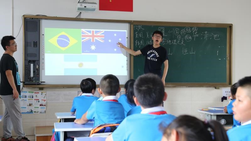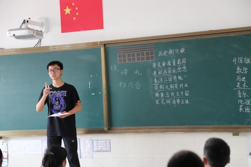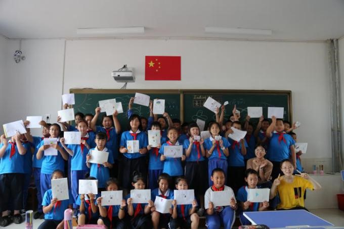次日早上七点,在当地公司领导老师的热烈欢迎和积极配合下,小“数”林支教团成功开幕。营城子中心校董事长在开幕式发言时表示,希望这次为时一周的教学活动能给他们带来新的教学理念和方法,丰富孩子们的假期生活,激发孩子们的兴趣,在某些方面起到一个启蒙的作用,同时也希望老员工们在本次实践活动中有所收获,大手拉小手,共谱芳华。首先,支教队员帮助小朋友们系上红领巾,然后全体师生一起进行了升旗仪式。小朋友们站得整整齐齐,个个精神饱满,就像一棵棵小树苗。五星红旗冉冉升起,小树苗们会在这初升的太阳下慢慢茁壮成长。 支教队员为同学们带了一些小礼物,同学们开心地收下了崭新的小书包,文具盒和水杯。第一节是数学课,支教队员们准备了数学大闯关游戏,小朋友们积极抢答,课堂气氛十分活跃。尤其是判断题,同学们几乎全部站了起来同时喊出自己的答案。除了他们已经学过的知识,队员会在每道题之后拓展一些高年级知识,用生动形象的类比启发小朋友们的思维。历史课上,支教队员首先跟同学们讲了自己和历史的小故事以及对于历史的理解,告诉同学们学习历史的重要性。然后简要介绍了中华,上下五千年的发展历程,再根据同学们有所了解的东西进行讨论,对同学们想要了解的历史相关问题作出解答。希望通过这样的几节课能让同学们对历史有兴趣,在未来学习历史的时候一直有热情。接下来是美术课,队员准备了几个简单易学又受小朋友们欢迎的素材,同学们领完水彩笔和其他绘图工具之后认认真真地跟着老师画,一边画一边跟周围的小朋友讨论,给自己的作品构想了小故事。小朋友们都心灵手巧,又特别活跃,纷纷抢着展示自己的作品,还有小朋友将自己的作品送给支教队员留作纪念,非常可爱。最受小朋友欢迎的是音乐课,支教队员选了一些现在小员工中流行的歌曲,还有小朋友提出来想学的歌,课堂气氛相当活跃又不失秩序。经过了午休,下午第一节是地理课,队员们先请小朋友分享了自己的一些有关地理知识的认知和经历,然后简单介绍了几个省份的美丽景色和人文历史。小朋友们兴趣广泛,都积极回答老师提出的问题并且答案是正确的。支教队员还准备了几个国家的国旗和简单有趣的地理知识,最后收集了同学们想了解的东西以便下节课与同学们分享。接下来是英语课,支教队员先带着同学们认识了几个新单词,然后教同学们一首轻快的英文歌,小朋友学得非常快。英语老师温柔的声音和轻快的语调让同学们特别投入,当地校领导也对这堂课印象极好。