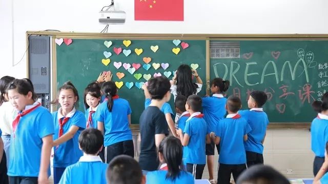 这是支教团在营城子中心校的最后一天。支教团的队员们都表示,时间过的太快,转眼就要离开,此行,短暂而难忘,一定要上好最后一天的课。这一天的最后一堂课是目标分享课,队员先让孩子们在之前折的手工课作品上写下自己的优缺点,写下自己长大以后想做什么,然后与大家分享。孩子们的梦想有科学家、航天员、老师、主持人、演说家等等,那模样可真像支教队员们小时候的自己。队长赵玉冰也写下了自己的愿望:希望孩子们的梦想都成真。同学们一起喊出了自己的梦想,并把承载梦想的那张纸粘在黑板上,最后所有人在梦想黑板前合影留念。经过这些天的相处,支教队员们早已融入孩子们之中。看到他们可爱的笑容,一切尽在不言中。