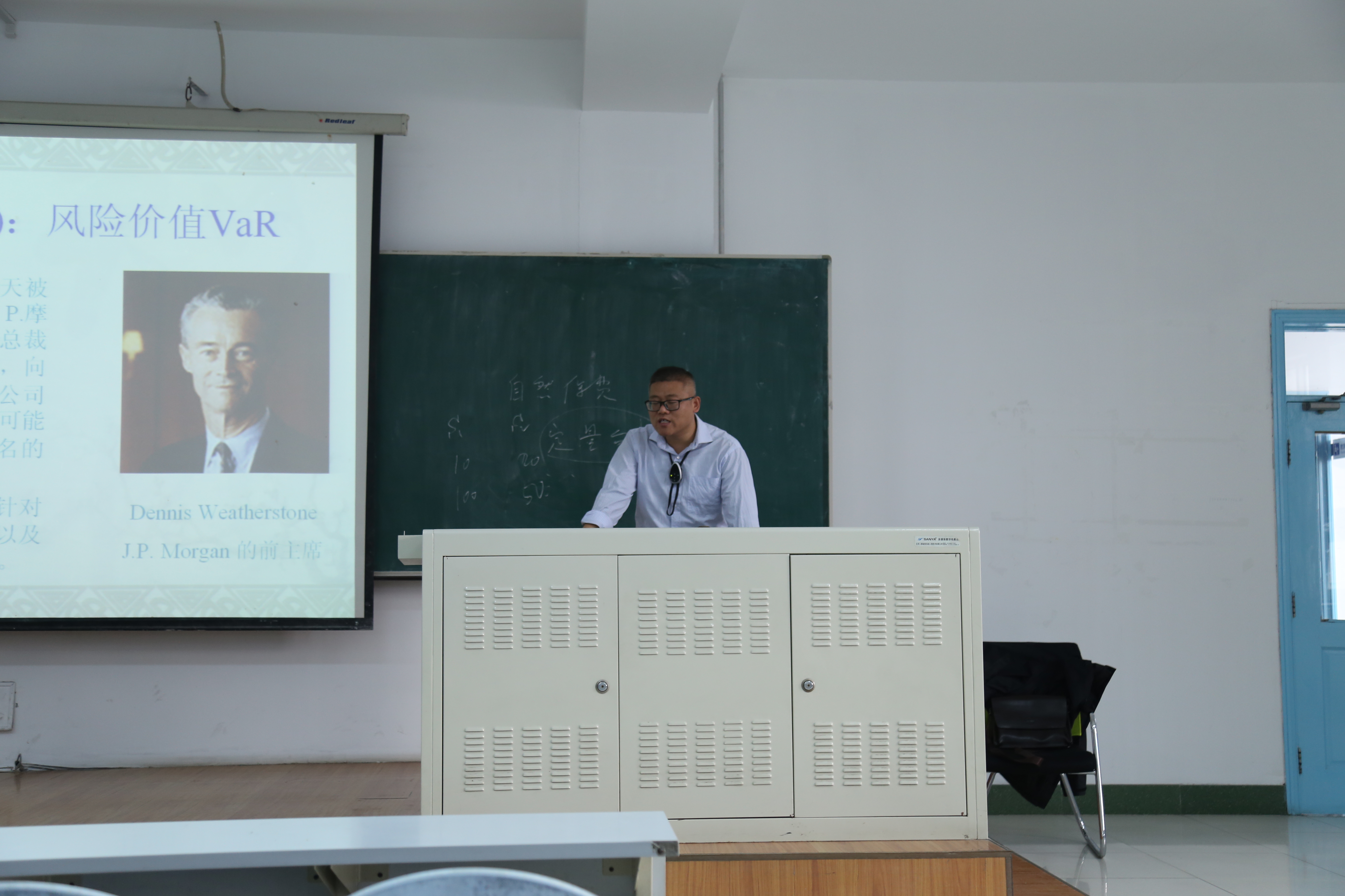 首先,程建华老师引用书中的内容作为讲座的开端,随后讲解了保险精算学的历史以及发展,介绍了有关学科,如:概率统计,随机方程等学科,之后,老师根据寿险和非寿险两种不同的保险分类,分别给出了几种风险类型。程老师语言幽默风趣,不时举出一些生动形象的例子,如股神巴菲特投资可口可乐的故事。最后,程老师还给同学们提出了建议,希望同学们能敢于表达自己不同寻常的看法,并且建议有兴趣的同学努力学好相关基础学科,成为保险精算领域的未来领袖。