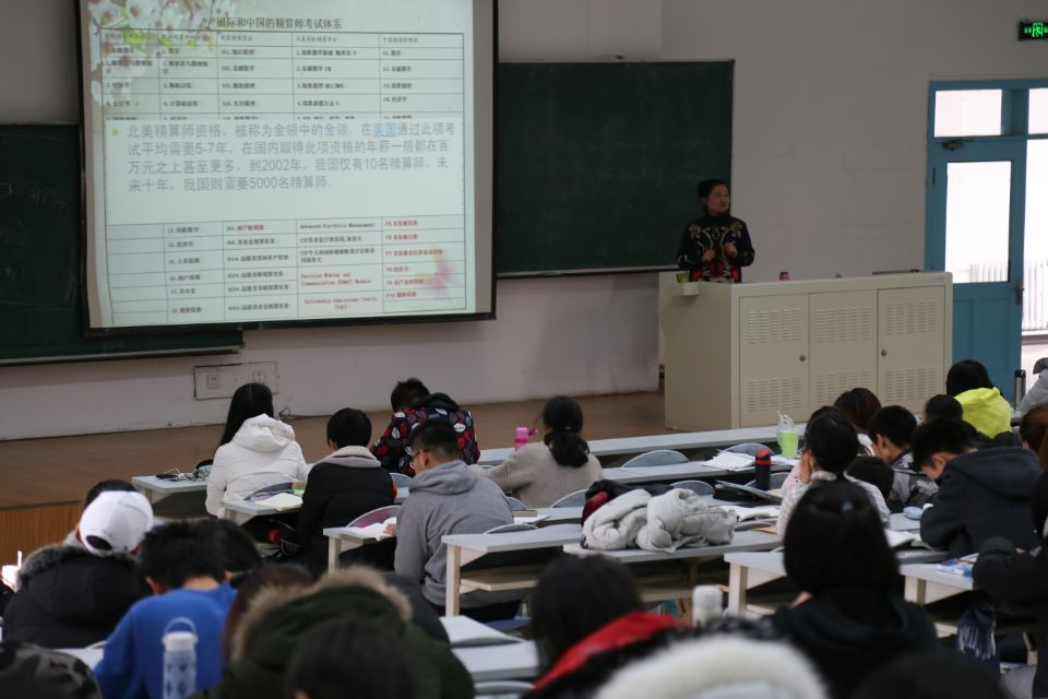 寿险精算是保险的一个分支,而保险又是金融的主要组成部分之一。金融,说白了就是在处理金钱的走动,搞清楚它从哪里来,往哪里去。讲座一开始,韩老师为大家放了4个简短的视频,其内容多为外国知名保险公司的宣传广告,生动有趣的为大家展示了金融学的一些奇妙之处。同学们也对寿险精算产生了浓厚的兴趣。