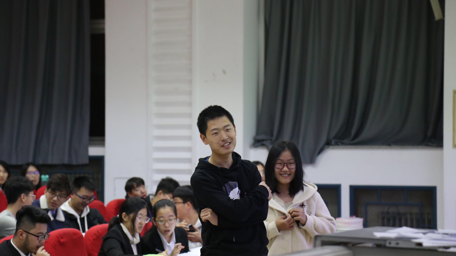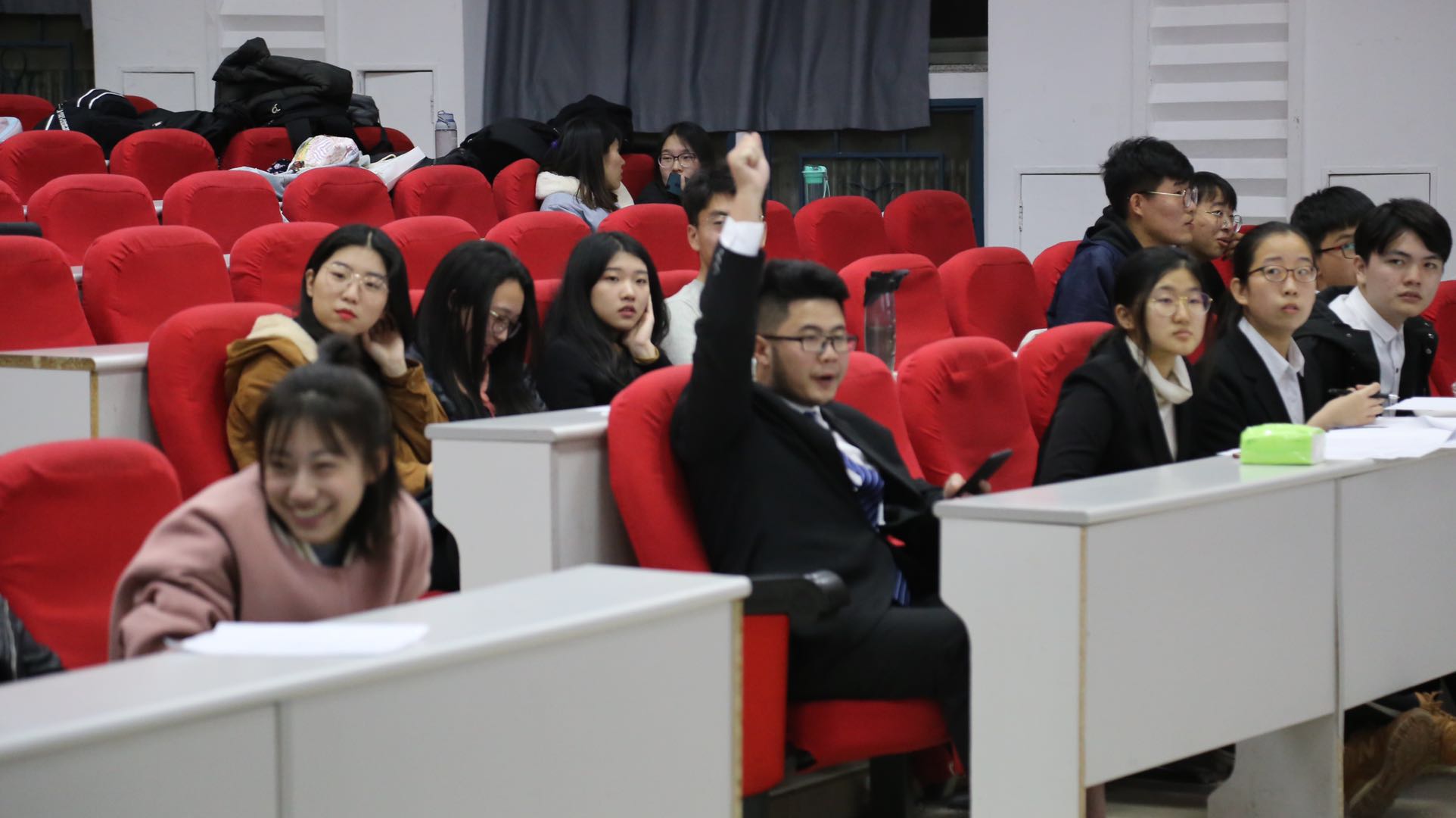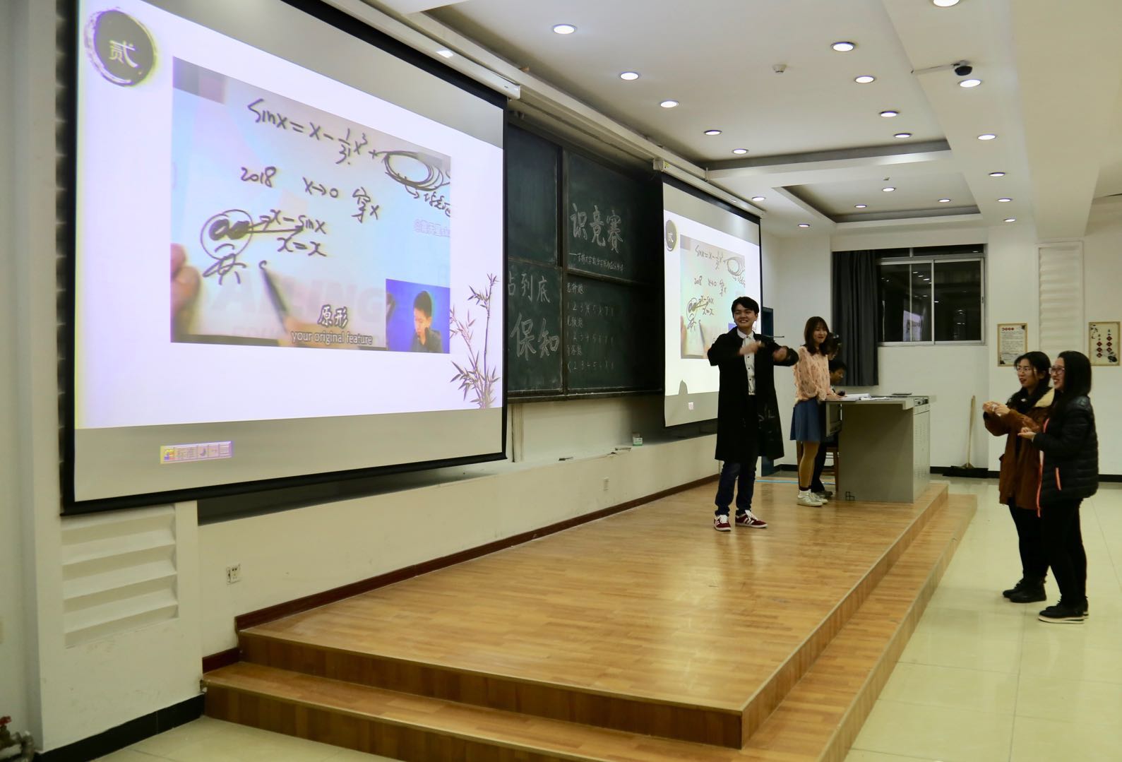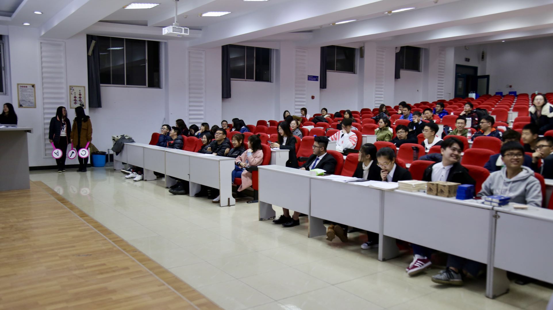 到场嘉宾有员工会主席邱韵,团委副书记李潇琦,员工会副主席高明睿,员工会副主席张民昊,生活部部长宋成鑫,团委社会实践部部长赵玉冰,权益保障部部长林静。晚上六点三十分,伴随着热烈的掌声,和同学们激动的心情,一站到底知识竞赛活动正式开始。