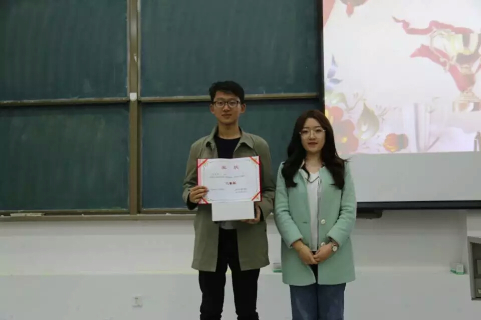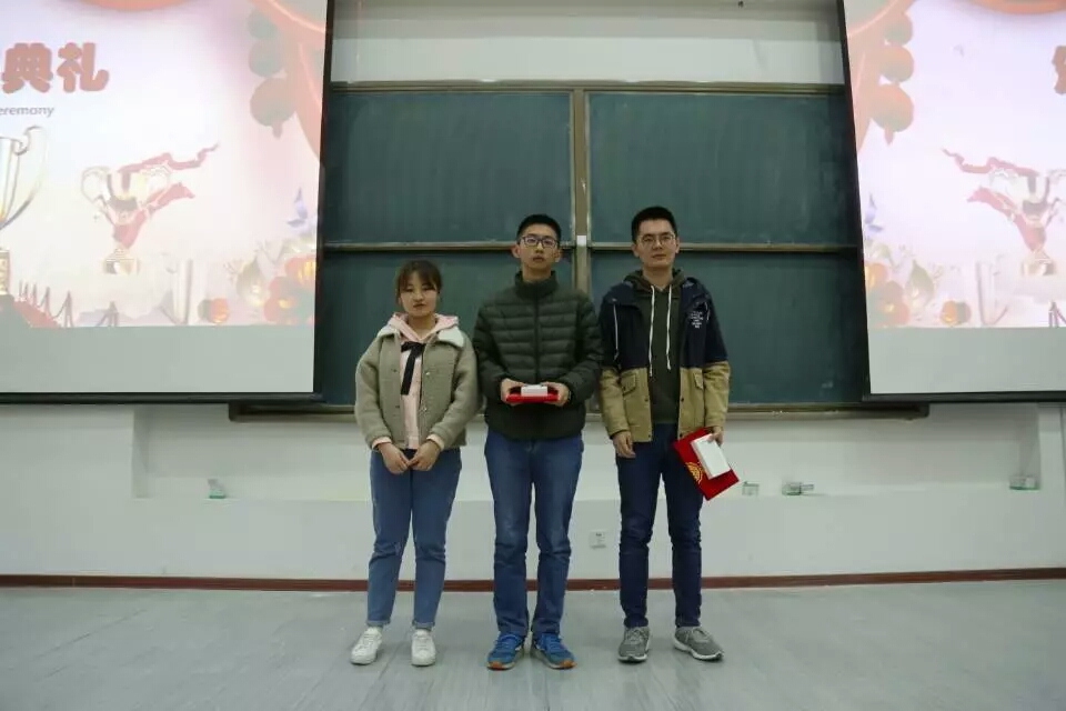 本次比赛参赛选手讲课风格各具特色,有的同学举例丰富、贴近生活,有的同学慢条斯理,从容不迫,有的同学随性恣意,别具一格;讲课内容亦是五花八门,数学分析,高等代数,空间解析几何,常微分方程等等,选手们思路清晰,表达清楚到位,并有自己的独到见解;讲课形式丰富多样,手写板书,板书或工整规范,或随性恣意;PPT辅助,PPT简洁明了,美观大方。讲台上的同学们神采奕奕,自信从容,大方得体,颇具老师风范。讲台下的观众亦是全神贯注,仔细聆听,收获颇丰。现场还设有趣味问答环节,同学们热情高涨,紧张思考,积极响应,纷纷举手回答问题。各位评委秉持着公平公正的原则为各位选手进行现场打分,评选出一等奖一名(17级马琰)、二等奖一名(18级吴岳霖)、三等奖两名(16级黄海涛 18级何易繁),分别由团委副书记郑旭东、团委副书记兼社联主席赵雯晗、新媒体中心主任兼员工会副主席王思梦为获奖选手颁奖。最后,各位评委,获奖选手及工作人员合影留念。至此,伟德国际victor1946讲课大赛完美落下帷幕。