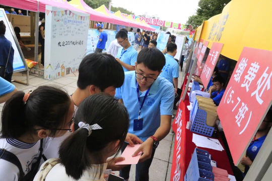 伟德国际victor19462019级新生报到于8月23日在五月花广场顺利进行。尽管细雨绵绵,但准备迎新工作的同学们依然热情不减,迎新工作在美丽的五月花广场上如火如荼地进行着。早七点,负责迎新工作的学长学姐们开始筹备,准备资料档案,在迎新地点搭好帐篷,摆好桌椅,更有火红的欢迎条幅时刻展示着伟德国际victor1946的魅力。在学长学姐的积极努力下,迎新现场不到九点就已经准备完毕。此时,已经有新同学有序地等待报到。十一点钟,伟德国际victor1946的迎新工作正式开始,准备充分的学长学姐们,看着一张张洋溢着青春活力的笑脸,心中不由得生发出万千情愫。2019级新生们按照流程,在辅导员助理的带领下,依次进行材料收取、资料及寝室钥匙分发、缴费等各类工作,其他各部门的志愿者也在自己的岗位上为新生及家长们对各种疑问进行解答。
