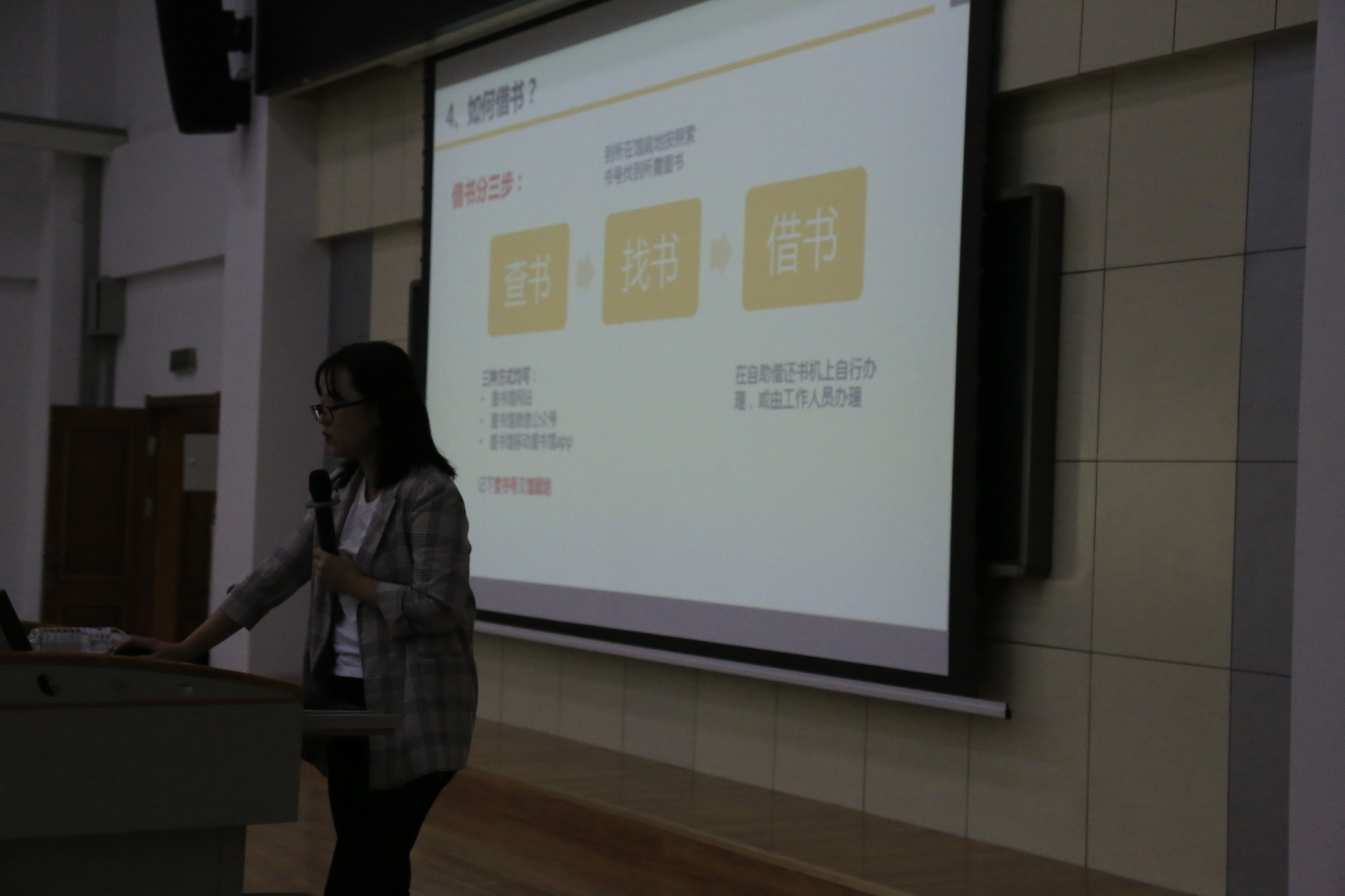本次活动以普及大学图书馆使用为目的,主要是为了让同学们了解关于图书馆的基本知识,知道如何借阅图书以及一些图书馆的规定,避免行为上的错误。负责讲课的老师从图书馆的查询方式讲起,同学们可以通过微信公众号、图书馆APP、图书馆网页查询图书及个人相关信息,老师具体讲述了如何借阅和归还图书,以及图书馆的一些注意事项,例如不能带外卖进馆、逾期不还书的惩罚、图书馆内保持安静、部分类别的书籍不能外借,只能在馆内阅读等。老师的语言幽默生动,报告厅内也时不时传出同学们的阵阵笑声,这也为这次报告增添了不少色彩