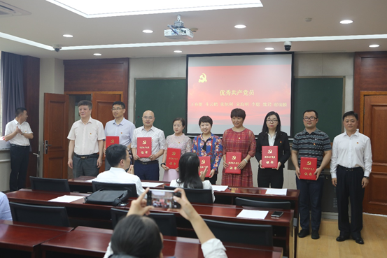 副经理王浩百、党委委员孙毅、纪友清、中心副主任徐向红为获得优秀共产党员的14名同志颁发了荣誉证书。