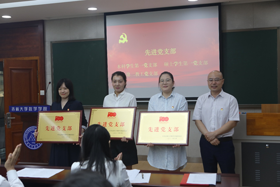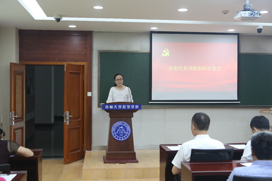 获奖代表刘倩茹同学进行了发言。刘倩茹同学表示,作为优秀共产党员的代表,要充分发挥共产党员的先锋模范作用,坚持立德树人根本任务,以勤勉学习和无私的奉献回报祖国和人民;要在学习中强化实践意识,把学到的知识转换为工作的能力,为以后的发展打下良好的基础,奋力迎接新时期的挑战。