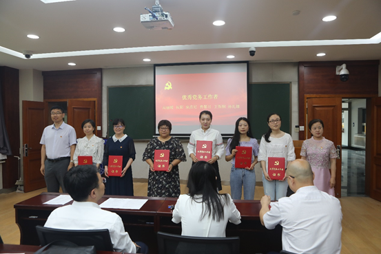 副经理生云鹤、中心副主任张旭利为获得优秀党务工作者的6名同志颁发了荣誉证书。