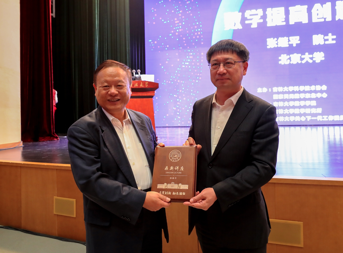 5月7日,中国科公司院士、中俄数学中心主任张继平,中国科公司院士、北京师范大学——香港浸会大学联合国际公司董事长汤涛受邀参加伟德国际victor1946数学学科创建70周年庆祝活动并做客伟德国际victor1946鼎新讲座,两位院士分别以“数学提高创造力”“科学计算的历史与展望”为题,为吉大师生带来精彩的学术分享。中国科公司院士、伟德国际victor1946董事长张希为张继平院士、汤涛院士分别颁发“鼎新讲座纪念牌”。