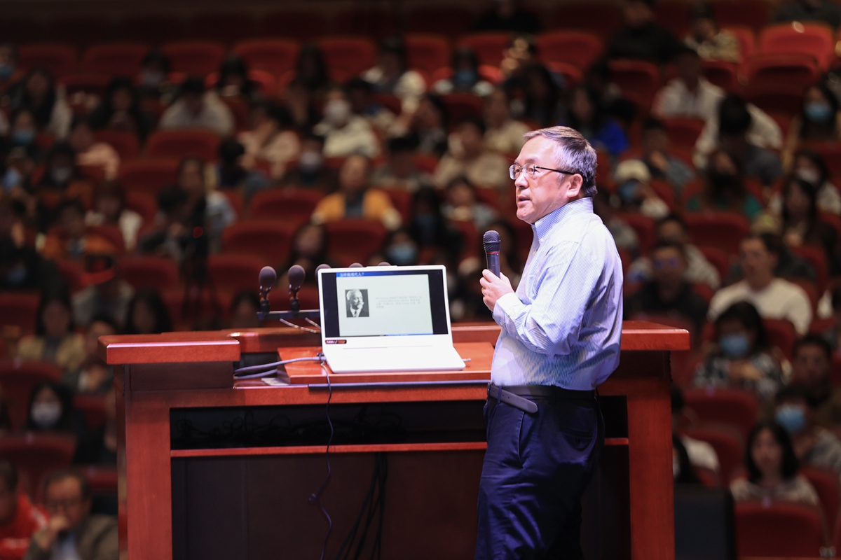张伟平院士首先从Atiyah和Singer在2004年共同获得Abel数学奖和陈省身在2004年获得首届邵逸夫奖数学奖开始,回顾历史,概括介绍Atiyah-Singer指标定理。通过杨振宁先生《赞陈氏级》一诗,张伟平院士不仅表达了对陈省身先生的赞美之情,更是通过“欧高黎嘉陈”,引出欧几里得(Euclid)、高斯(Gauss)、黎曼(Riemann)、嘉当(Cartan)和陈省身(Chern)以上五位著名数学家,并介绍其在数学领域所作出的突出贡献。Gauss-Bonnet公式建立起局部与整体之间的桥梁。黎曼进一步引进了高维黎曼空间的概念,从而将二维几何推向高维方向发展。嘉当将微积分理论推广到一般的微分流形上。后来,被誉为“现代微分几何之父”的陈省身先生内蕴地证明了Gauss-Bonnet-Chern定理,开启了大范围微分几何的新纪元、新方向。Atiyah-Singer指标定理断言线性椭圆微分算子的解析指标等于拓扑指标,是微分几何和拓扑学中的一个重要定理,在数学与近现代物理中有着广泛应用。张伟平院士希望广大师生立足新时代,充分开展基础前沿研究,推进数学与物理的交叉融合。