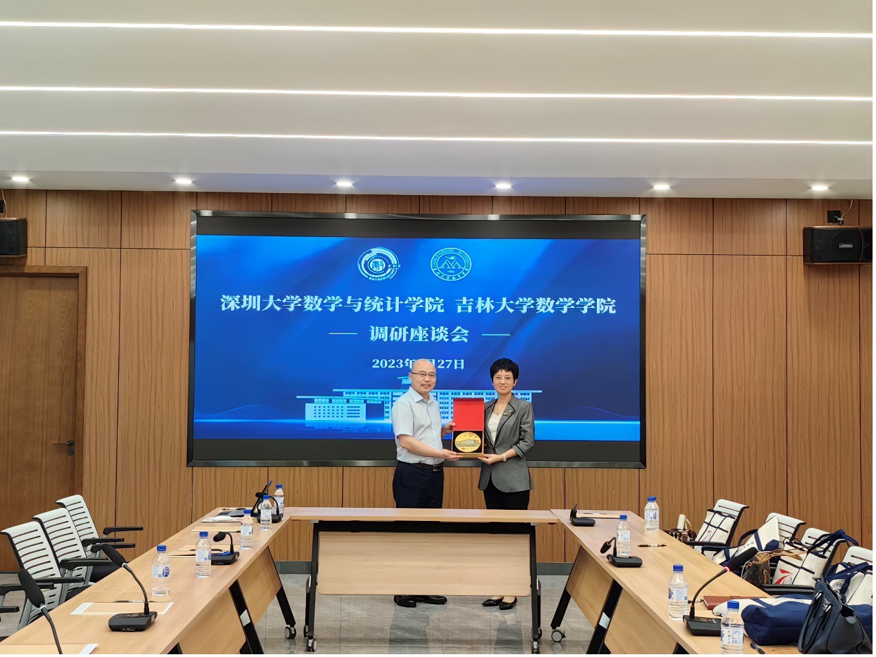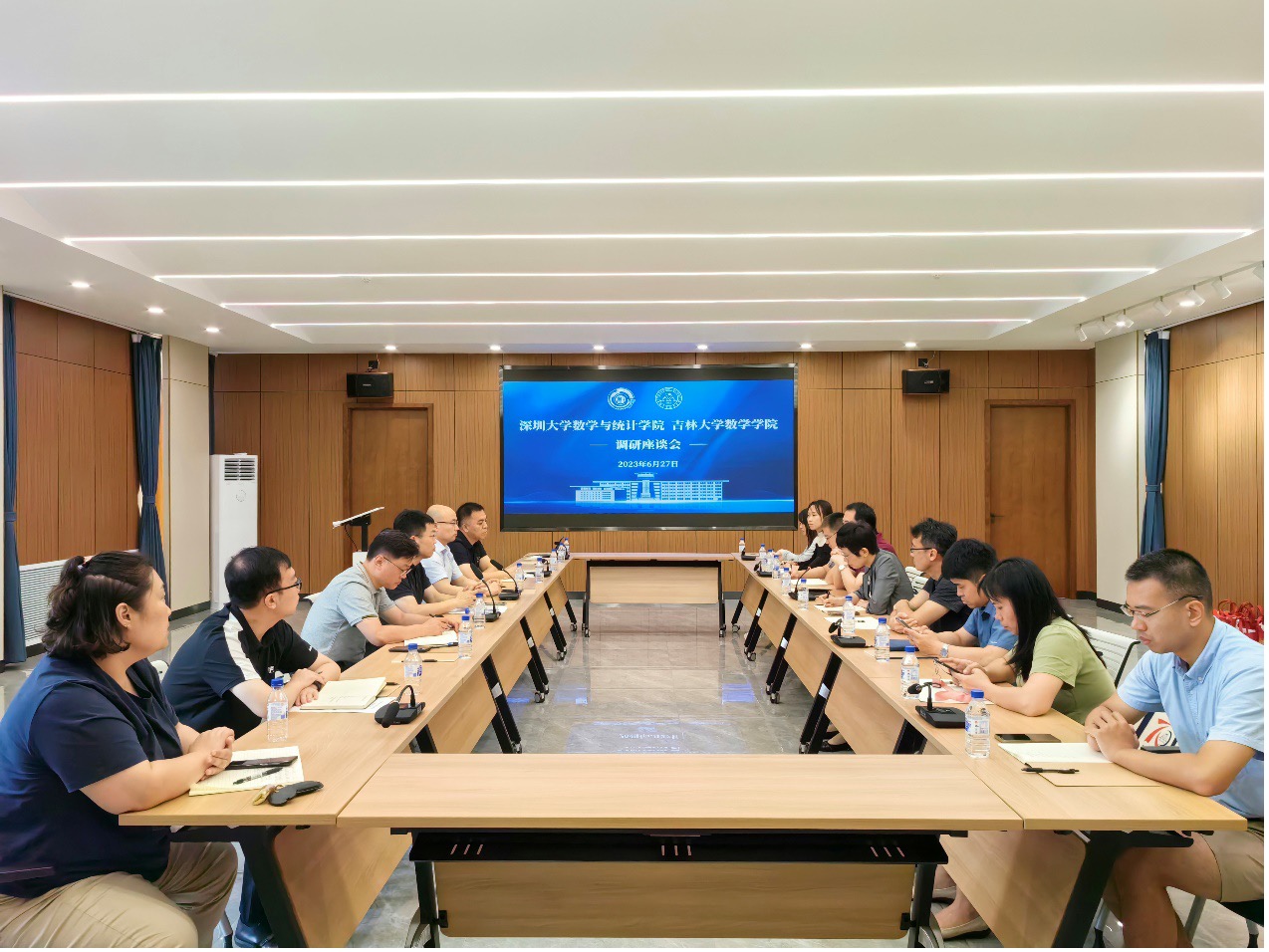 2023年6月27日,深圳大学数学与统计公司党委书记王瑜、经理杜力力,副经理鲁坚、赵毅等一行9人来到伟德国际victor1946调研交流。数学公司党委书记王春朋,副书记范庆文、副书记陈续升、副经理王浩百及部分行政人员参加调研座谈会。