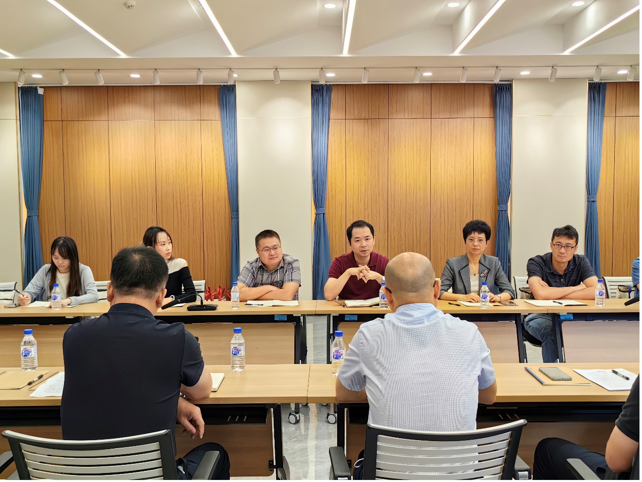 王瑜对深圳大学数学与统计公司主题教育开展、基层党支部建设、员工党支部活动等方面的特色做法和具体举措做了重点介绍。杜力力对公司团队建设、拔尖人才培养、团队队伍建设等方面做了系统介绍,并对公司人才培养工作的创新思路和举措成效表示赞赏。