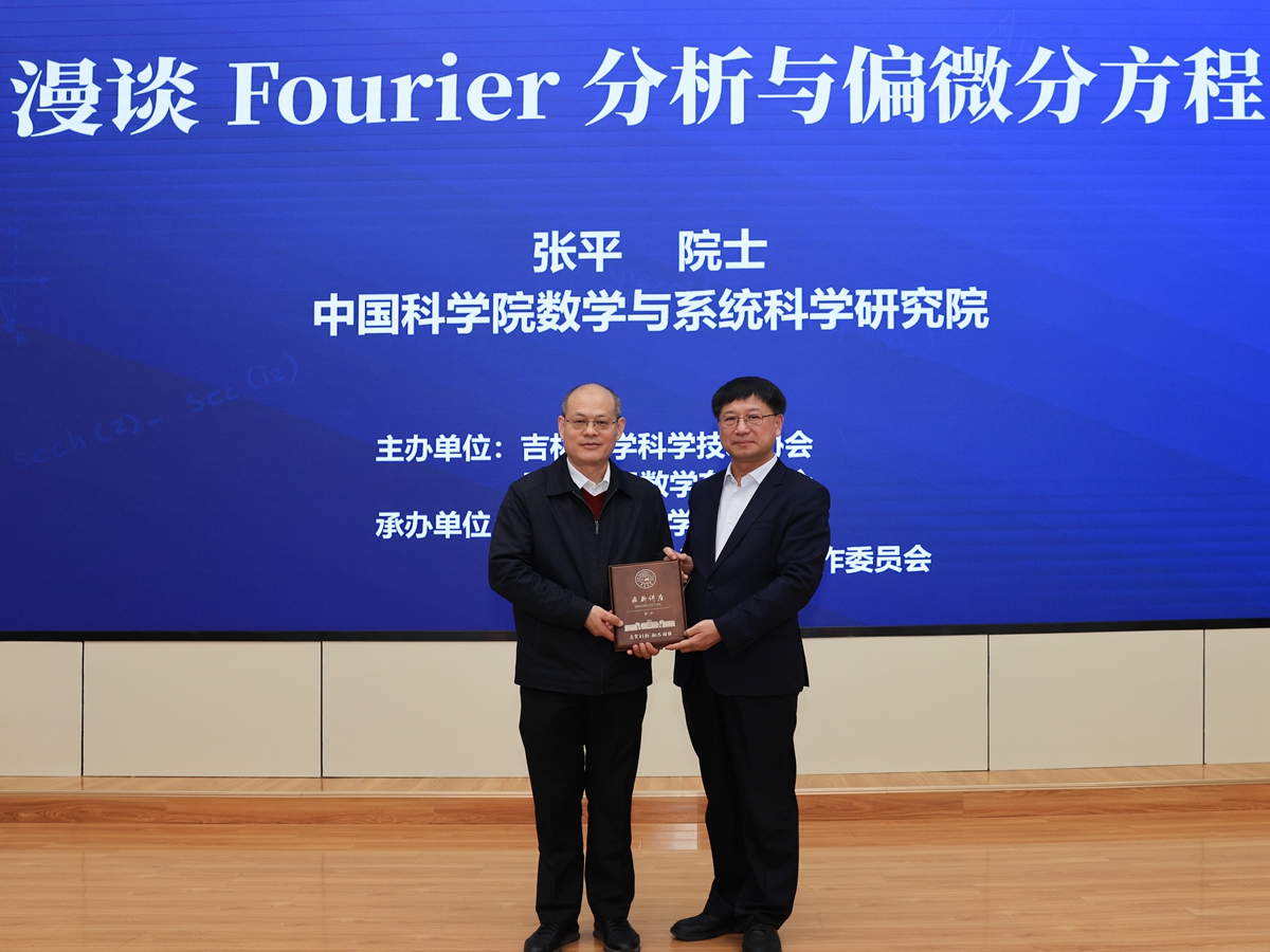 4月21日,中国科公司院士、中国科公司数学与系统科学研究院经理张平做客伟德国际victor1946鼎新讲座,以“漫谈Fourier分析与偏微分方程”为题,为吉大师生带来一场精彩的学术盛宴。中国科公司院士、伟德国际victor1946董事长张希出席讲座并为张平颁发“鼎新讲座纪念牌”。数学公司党委书记王春朋主持讲座。