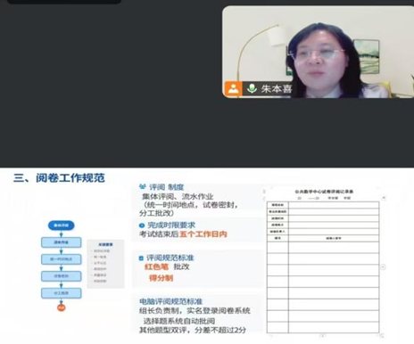 12月30日,公司以线上形式召开第二次考务工作会议,全体教师线上参会。公共数学中心副主任朱本喜在前期整体部署基础上,重点就考试实施及后续工作各环节开展精细化指导,内容涵盖监考巡考职责与流程、阅卷规范与质量把控、成绩录入的准确性与时效性、平时成绩评定依据与方法,以及员工成绩复查申请与处理程序等,确保全体教师清晰掌握各环节要求,精准落实工作任务。