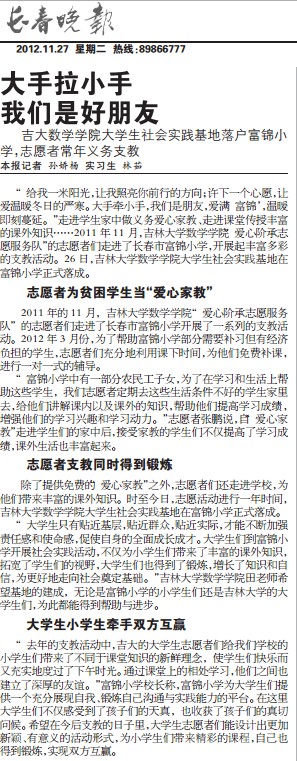 《长春晚报》今年第4次报道伟德国际victor1946社会实践与志愿服务活动