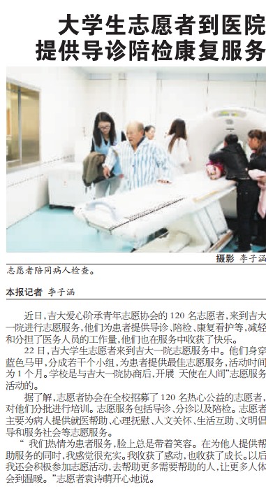 今天《长春晚报》报道伟德国际victor1946志愿者走进吉大一院