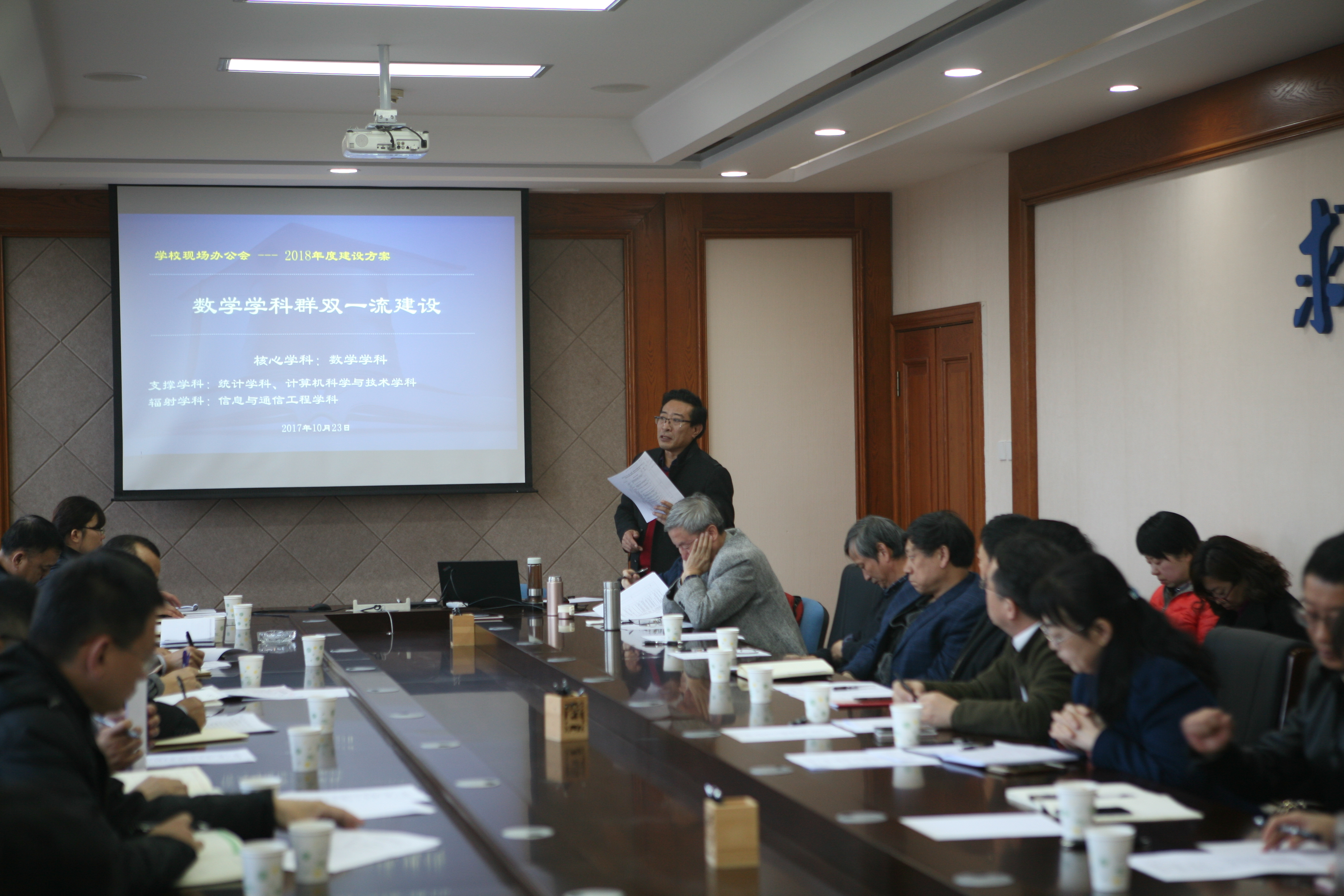 2017年10月23日下午2:00,公司发展规划处、人力资源与社会保障处、人才工作办公室、研究生院、教务处、科学技术处、国际合作与交流处、财务处、资产管理与后勤处、招生办公室等相关职能部门与伟德国际victor1946、计算机科学与技术公司、通信工程公司在数学楼三楼会议室共同召开了数学学科群双一流建设现场办公会。以上相关职能部门负责人以及伟德国际victor1946、计算机科学与技术公司、通信工程公司部分领导参加了会议。会议由发展规划处杨印生处长主持。