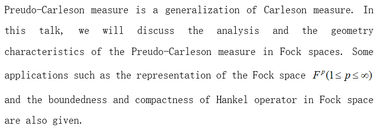 报告题目:Preudo-Carleson measures in the Fock space