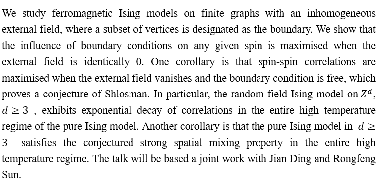 报告题目: A new correlation inequality for Ising models with external fields