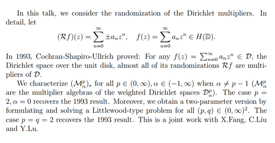 程国正,大连理工大学数学科学公司教授,博士生导师,主要从事函数空间上算子理论以及随机解析函数研究。近年来在 IMRN, JFA, TAMS等国际数学刊物上发表论文十余篇,主持4项国家自然科学基金项目。