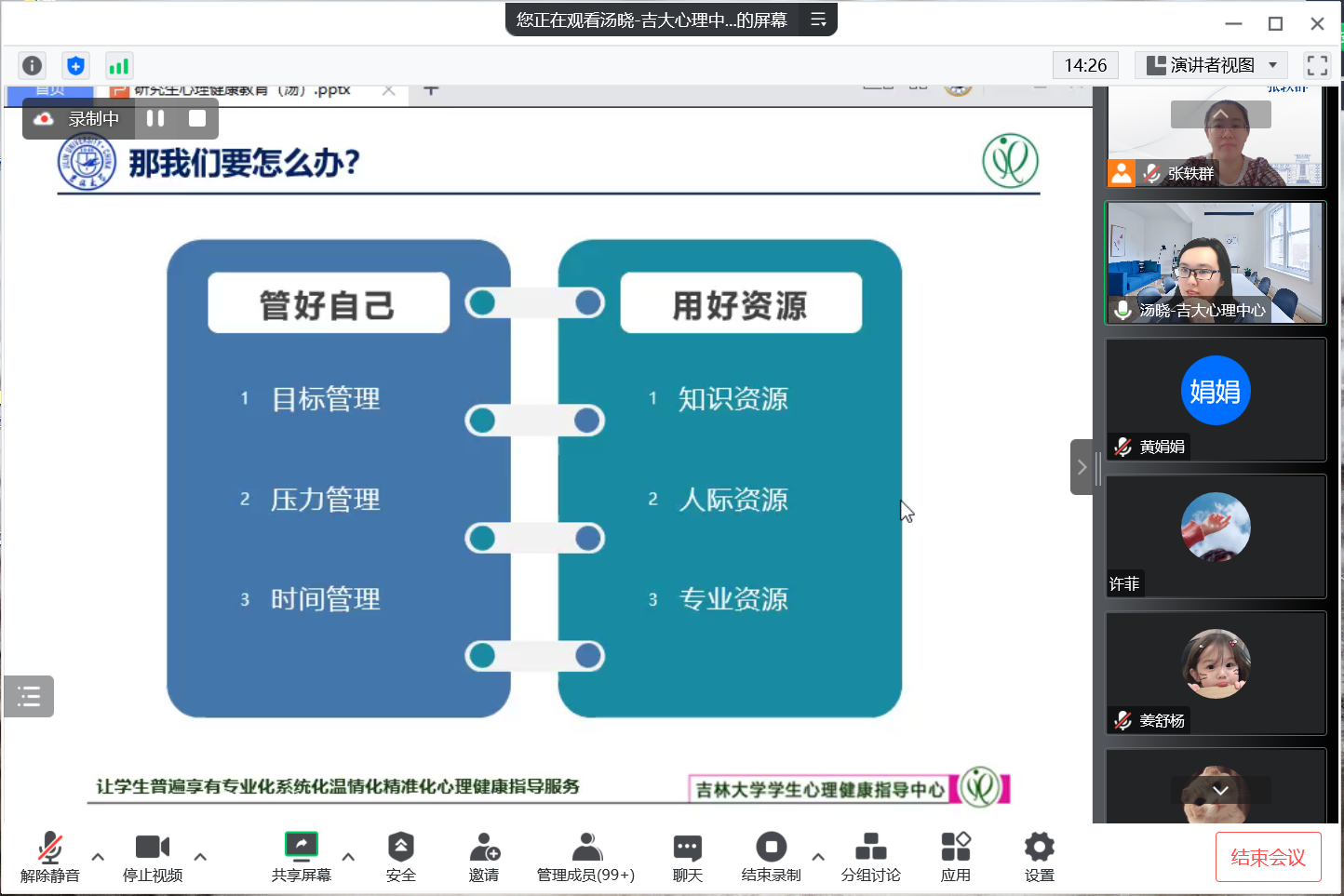 汤老师有理有据、声情并茂的讲解,为大家带来了一堂干货满满的讲座。通过此次讲座,帮助同学们丰富了心理健康知识,了解了在有需要的时候应该如何获取帮助。关注心理健康,是每位同学学习研究之路上的重要一环,需要我们共同努力。
