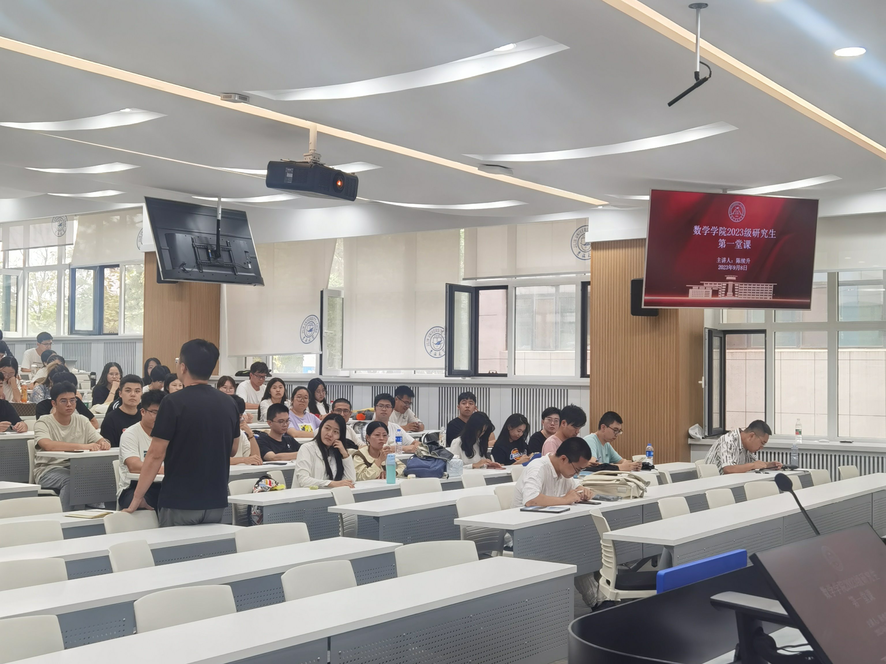9月8日下午,2023级研究生新生入学教育系列活动第三期——新生第一堂课在逸夫教学楼第三阶梯教室举行。本次课程由数学公司党委副书记、纪委书记陈续升主讲,研究生辅导员张轶群和2023级全体研究生参加了本次会议。