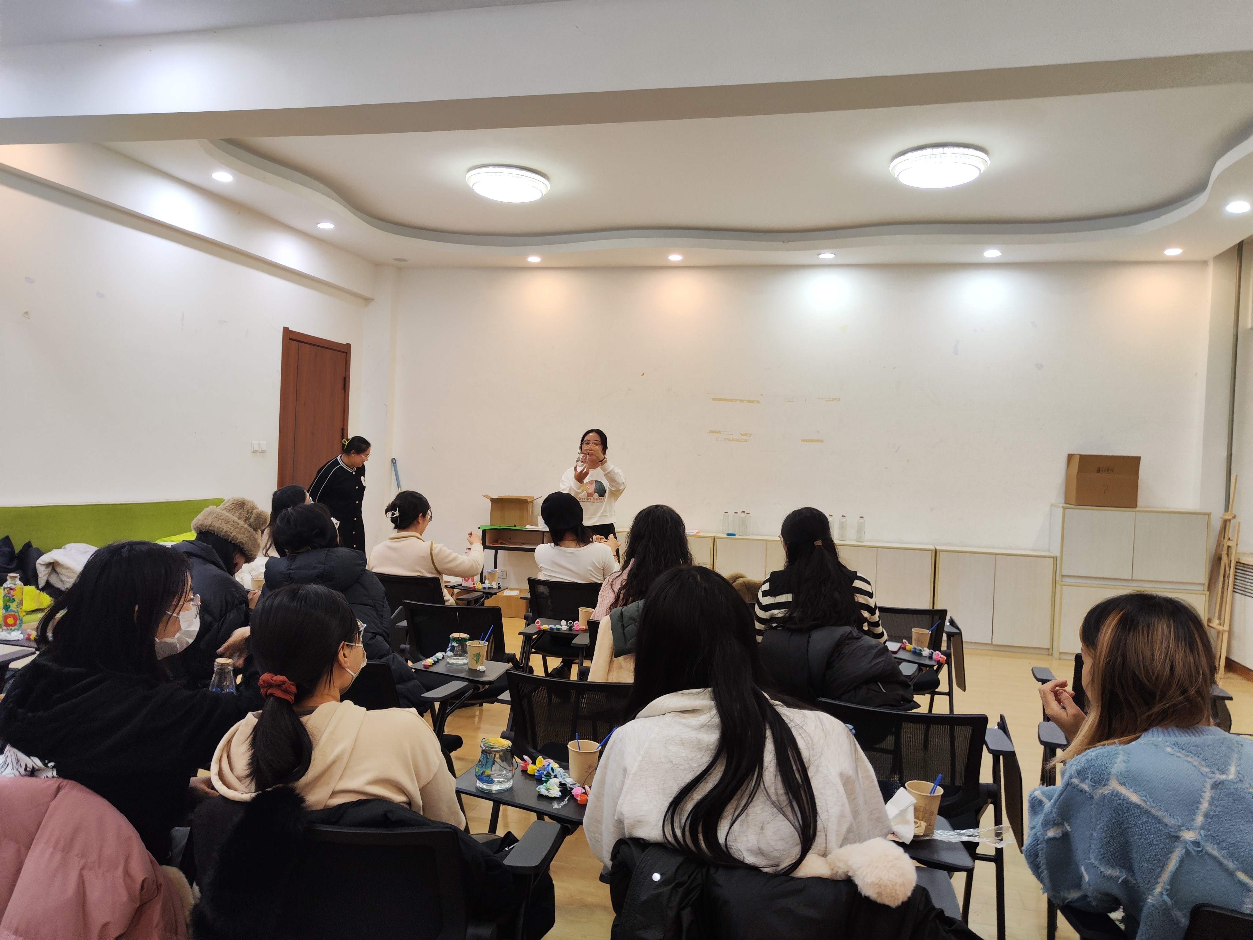 本次活动为同学们提供了一个独特的表达情感和交流思想的机会,活动过程充满了轻松与愉悦的氛围。在本次活动中,同学们以玻璃瓶为载体,在绘制色彩斑斓的画面的同时表达了深藏心底的真挚情感,共同谱写着我们校园生活中美好的一笔。