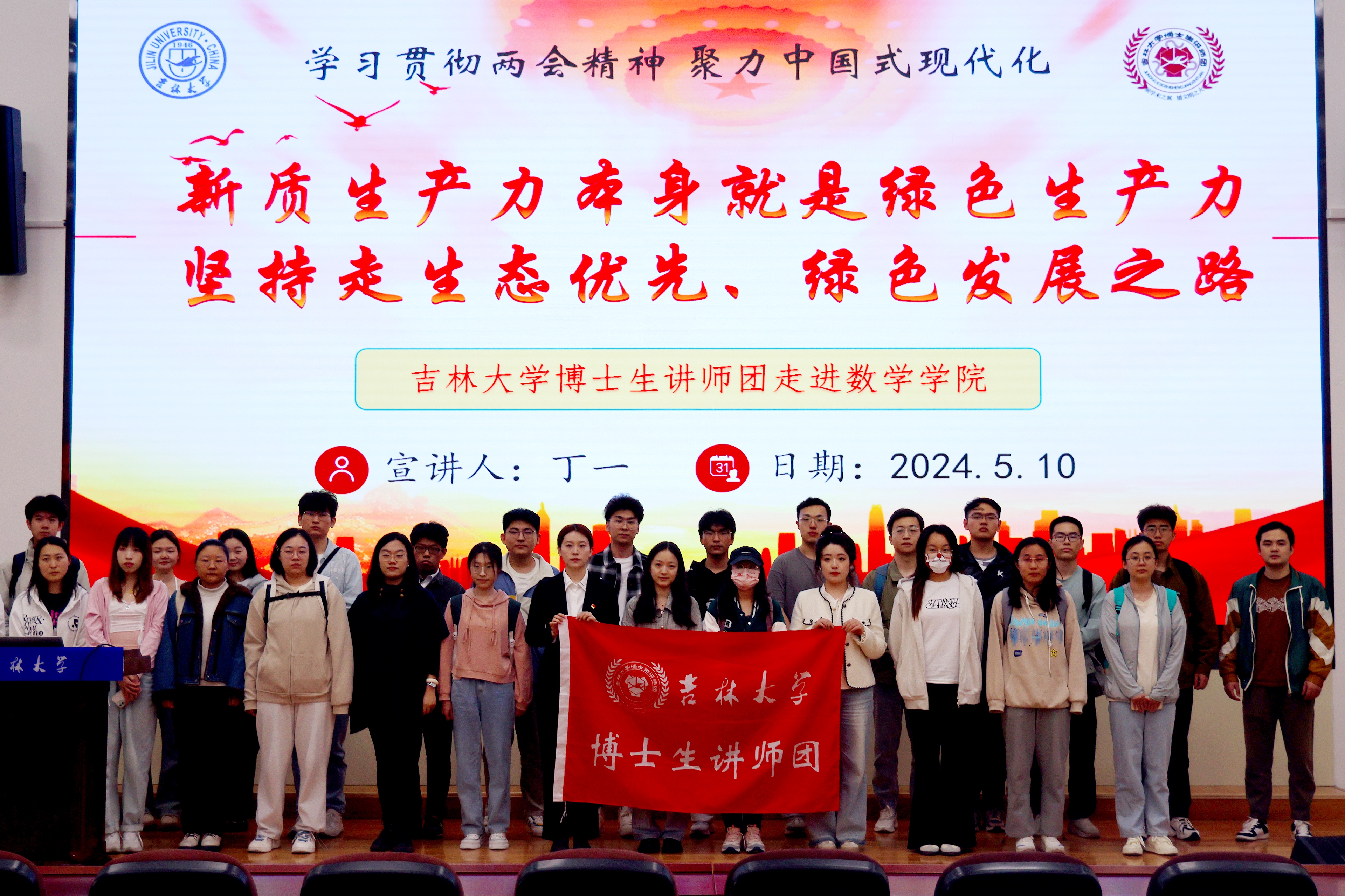 为深入学习宣传贯彻全国两会精神,充分发挥博士生讲师团理论宣讲作用,引导广大研究生深刻领悟“两个确立”的决定性意义,增强“四个意识”、坚定“四个自信”、做到“两个维护”,感受国家发展成就,为实现中国式现代化贡献青春力量,2024年5月10日,伟德国际victor1946博士生讲师团讲师丁一走进伟德国际victor1946开展“学习贯彻两会精神 聚力中国式现代化”宣讲系列活动。本次宣讲的题目是“新质生产力本身就是绿色生产力 坚持走生态优先、绿色发展之路”。伟德国际victor1946张轶群老师、研究生支部党员和研究生干部等参与了本次活动。