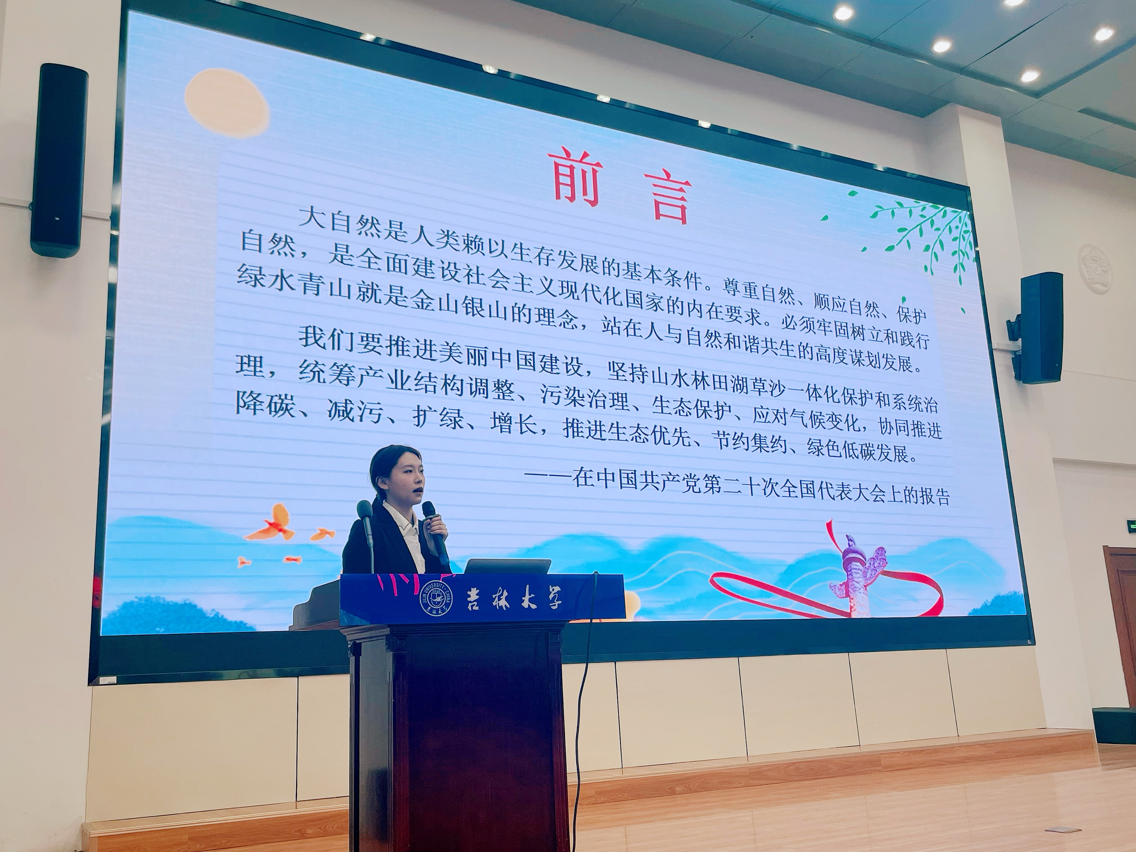 在本次宣讲中,丁一讲师以习近平总书记在主持中共中央政治局第十一次集体学习时的讲话,即“绿色发展是高质量发展的底色,新质生产力本身就是绿色生产力”为切入点,详细讲解了这一重要论断所阐释的新质生产力与绿色生产力之间的内在联系。绿色发展是实现经济高质量发展的必然要求,保护生态环境就是保护生产力,改善生态环境就是发展生产力。新质生产力是绿色发展的重要支撑,践行绿色发展理念为培育发展新质生产力提供了持续动力。通过本次宣讲,同学们更加明确了习近平生态文明思想是系统完整、逻辑严密的科学体系,它标志着我们党对社会主义生态文明建设的规律性认识达到新的高度。