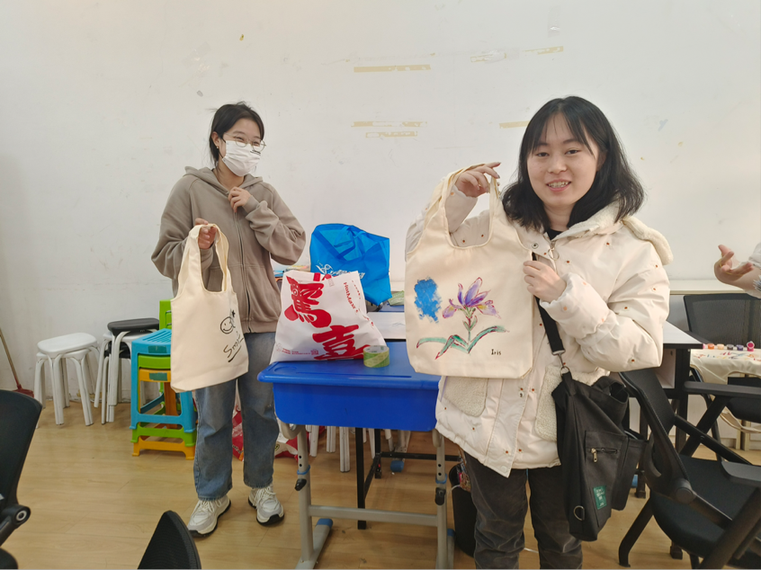 活动在下午2点准时开始,几十名来自不同公司的员工积极参与。在几个公司主办方的帮助下,员工们获得了空白帆布袋、颜料、画笔及马克笔等材料,并在帆布袋上进行了自由创作。他们根据自己的喜好设计独特的图案,使用不同颜色的颜料进行创作,最终制作出属于自己的个性帆布袋。
