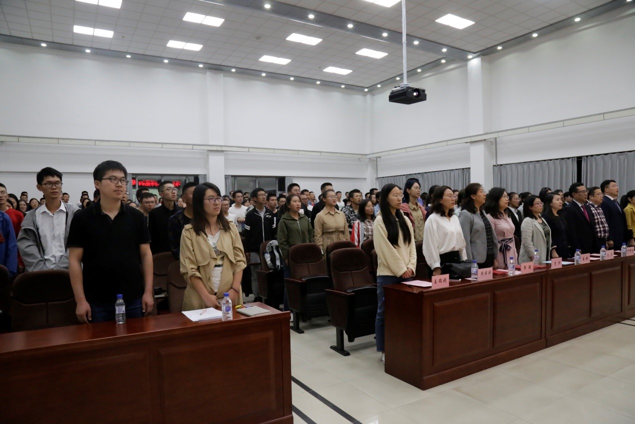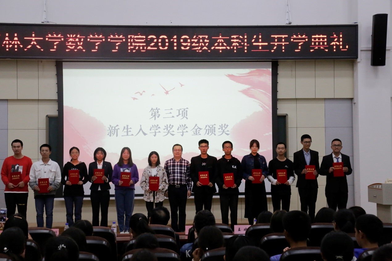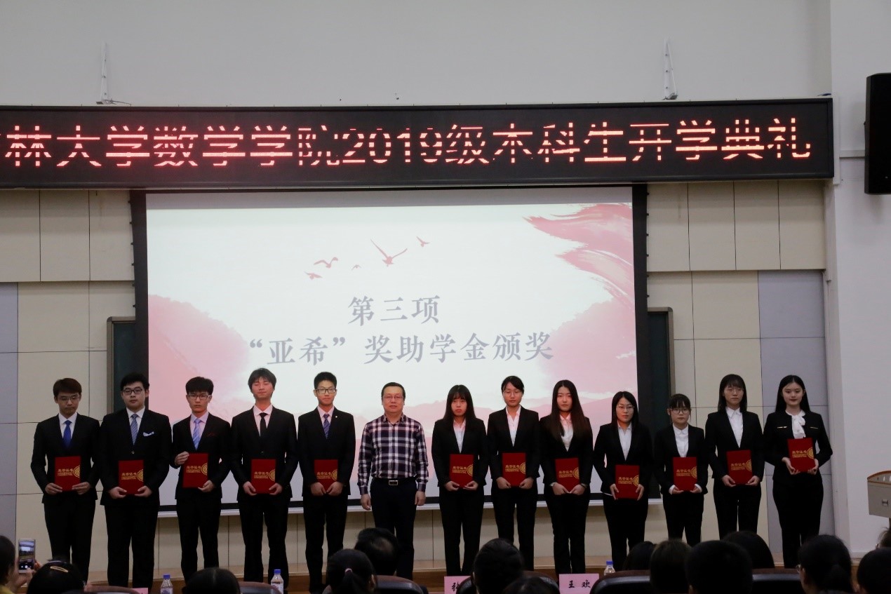 首先,全体起立,奏唱国歌。之后,数学公司党委副书记王欢老师宣读伟德国际victor1946赵悦奖学金、伟德国际victor1946“亚希”奖助学金、伟德国际victor19462019年新生入学奖学金的表彰决定。由伟德国际victor1946副经理史少云教授分别为获奖代表颁奖。之后,伟德国际victor1946副经理陈续升老师宣读青年教师班主任聘任决定。由数学公司党委书记张然教授为青年教师班主任颁发聘书。