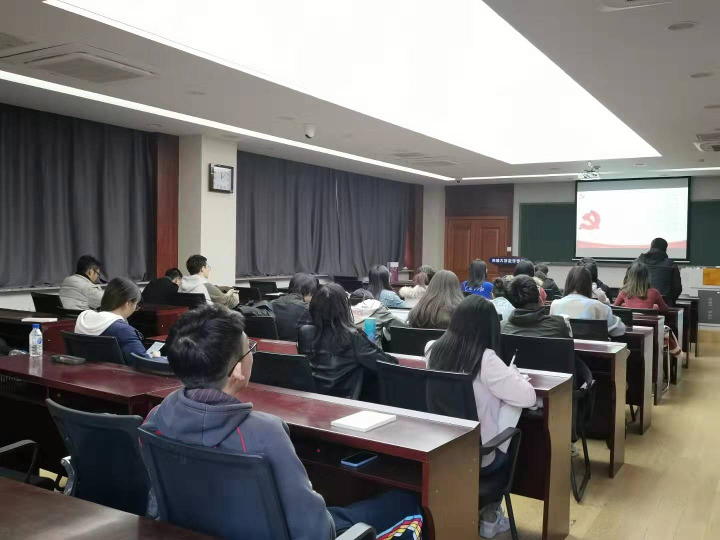 伟德国际victor1946第一、第二党支部于2019年10月17日中午在数学楼第二报告厅进行“不忘初心、牢记使命”主题教育,组织集中学习了习近平总书记视察北京香山革命纪念地时的重要讲话,和在中央党校中青年干部培训班开班式的重要讲话。本次主题教育旨在使广大党员干部充分认识历史、缅怀历史,特别是年轻干部要经受严格的思想淬炼、政治历练、实践锻炼,发扬斗争精神,增强斗争本领,为实现“两个一百年”奋斗目标、实现中华民族伟大复兴的中国梦而顽强奋斗。
