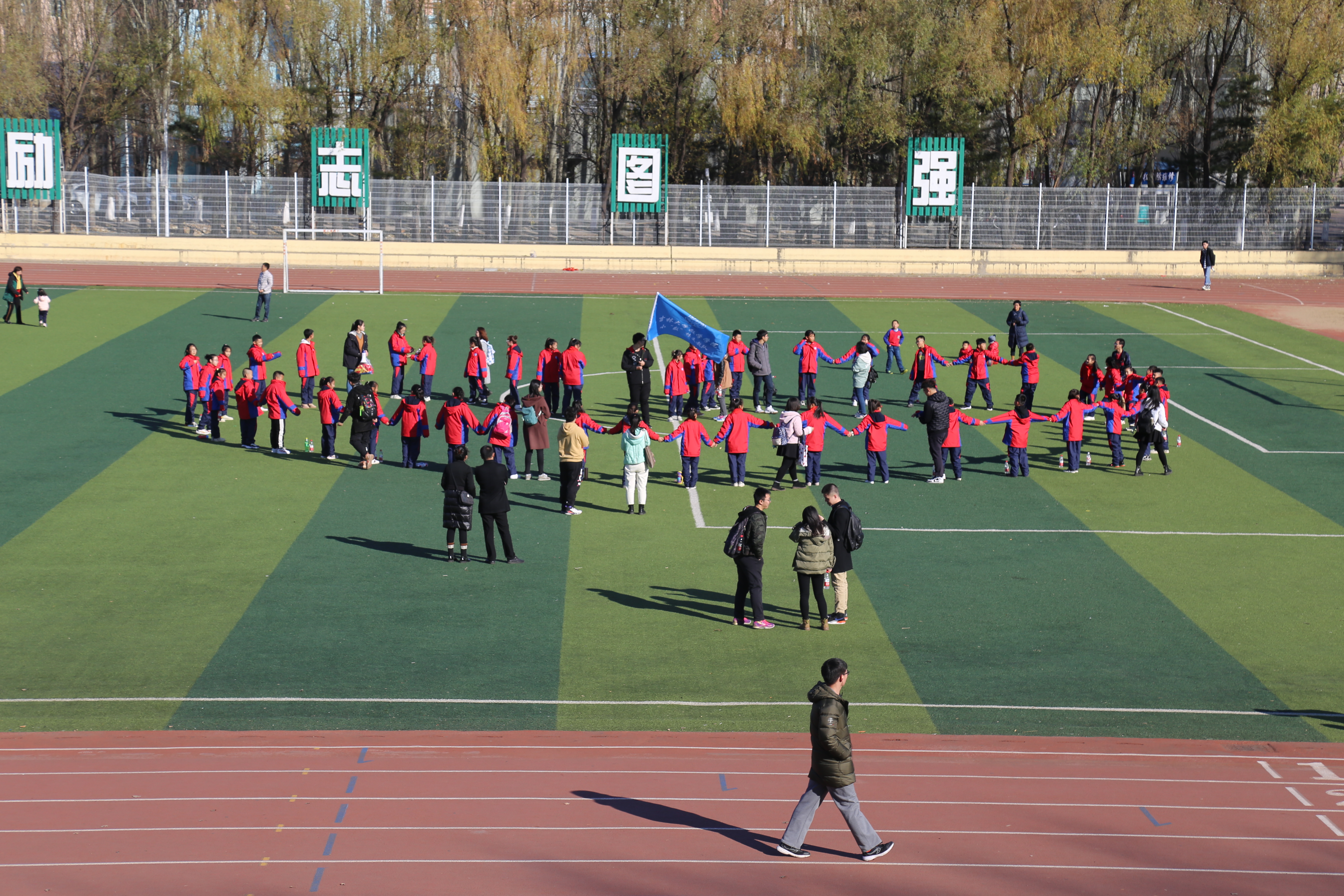 午饭后,全体师生漫步在伟德国际victor1946校园,伴随着志愿者的讲解,师生们参观了体育场、日新楼、五月花广场……老师和同学们有创意地在体育场摆出爱心的形状拍照,一路欢声笑语,快乐非常。最后孩子们来到数学楼报告厅,集体回顾观看了暑假小“数”林支教活动的总结视频。随后又有多名支教小老师分享了他们与吉大的故事,孩子们听得聚精会神。座谈最后,全体志愿者齐唱伟德国际victor1946校歌,为此次研学活动画上了圆满的句号。在志愿者的目送下,孩子们集体乘校车返程。